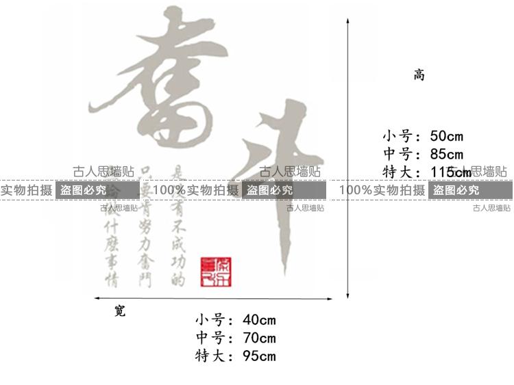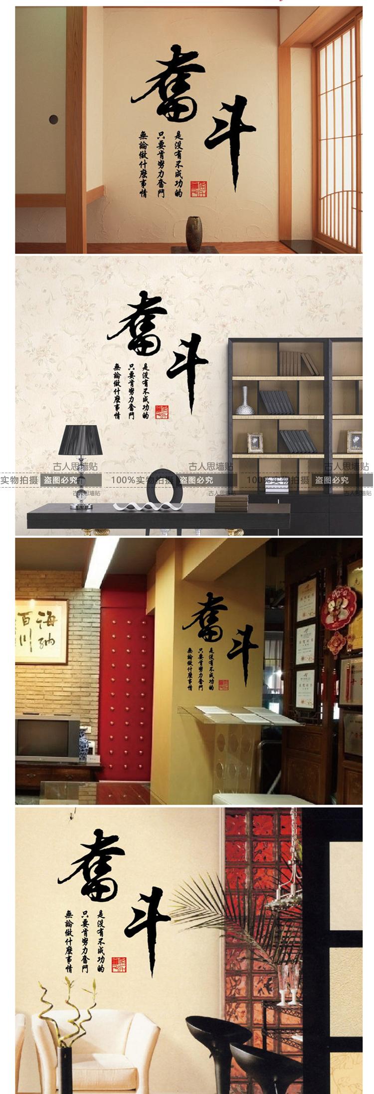 奮斗勵志中國風書法墻貼紙 企業文化墻貼紙 客廳書房學校裝飾貼1入