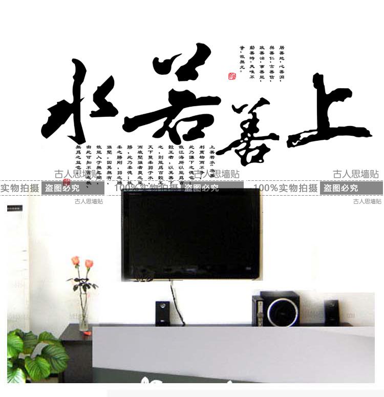 上善若水中國勵志書法墻貼紙 公司沙發電視背景客廳裝飾貼紙1入