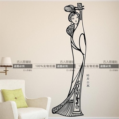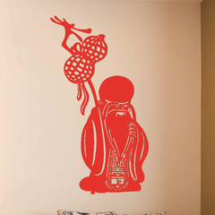 知足書法文字墻貼紙 屈原人物客廳書房玄關背景裝飾墻貼 創意中式1入
