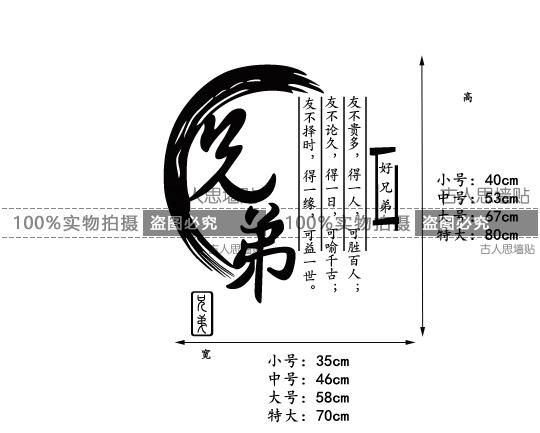兄弟文字書畫墻貼紙 客廳書房沙發墻背景裝飾墻貼 創意文字兄弟貼1入