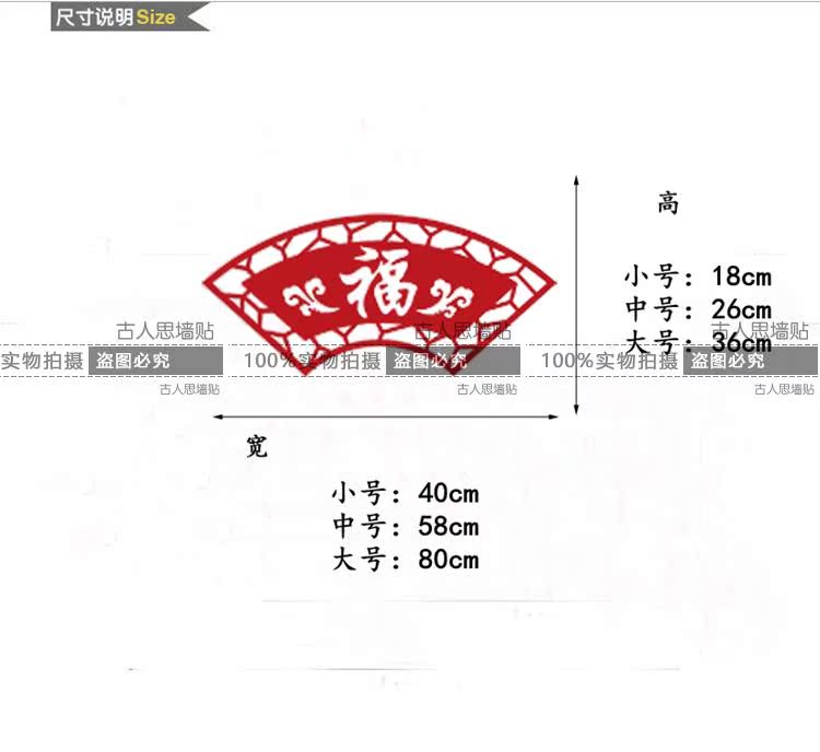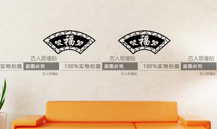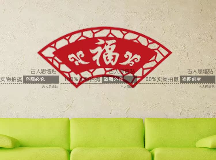 扇形福字古典書法文字墻貼紙 客廳玄關裝飾電視背景墻貼書房貼1入