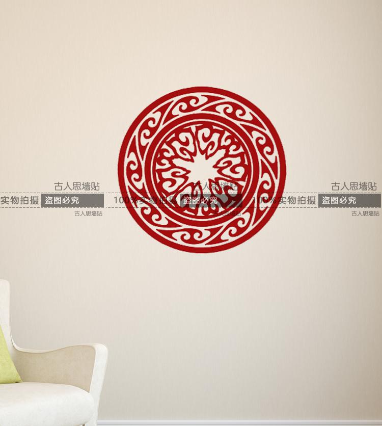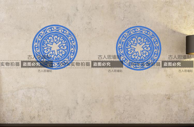中式古典圓形花紋墻貼紙 客廳電視沙發背景裝飾貼柜門玻璃櫥窗貼1入