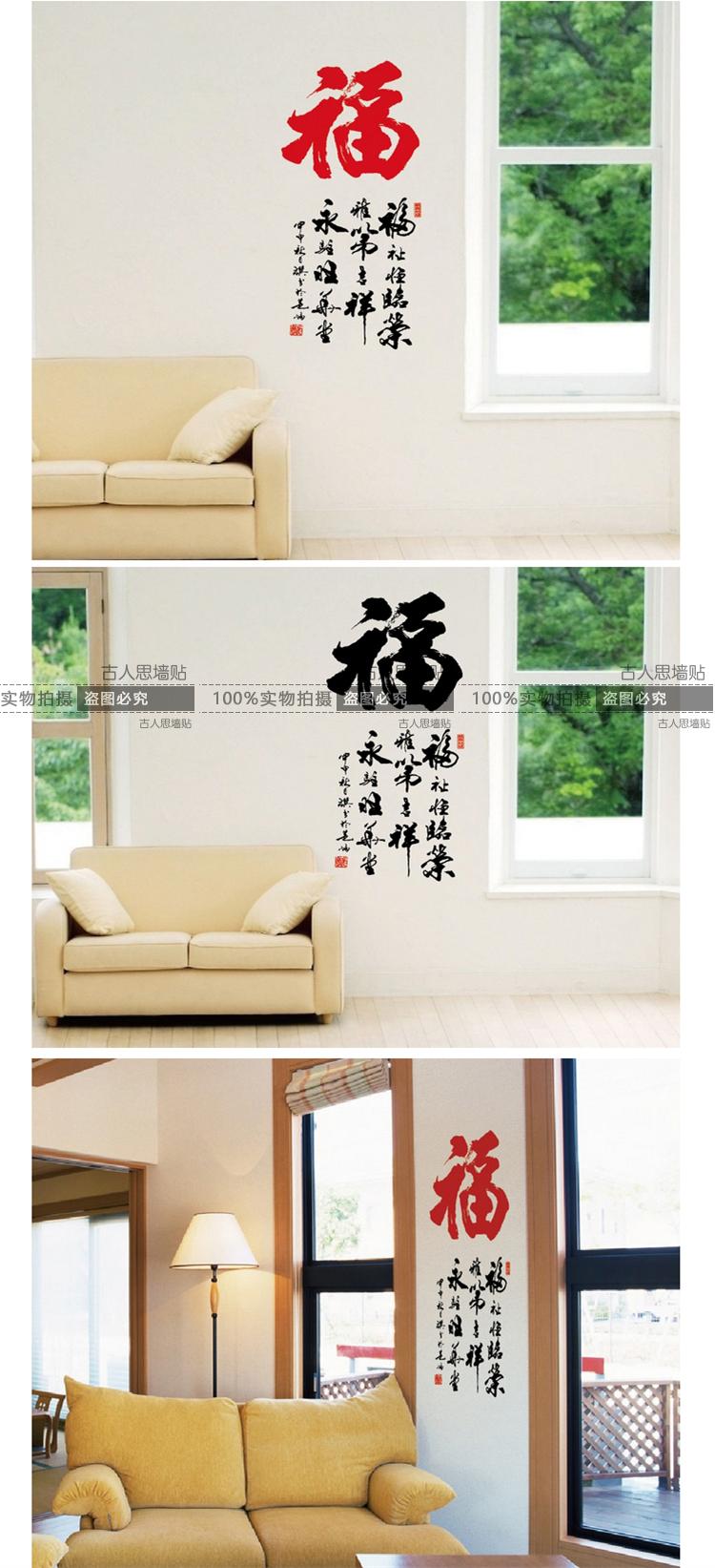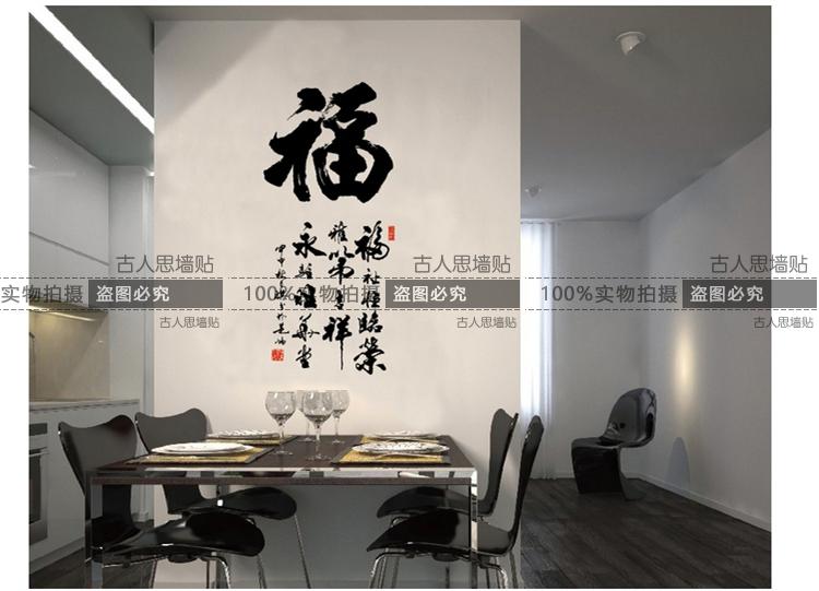 中國風書法墻貼紙 書房玄關客廳背景墻裝飾貼 福字書法墻貼畫1入