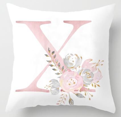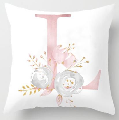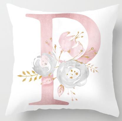 粉色雙面26個英文字母印花沙發抱枕套抱枕 Letter Cushion cover1入