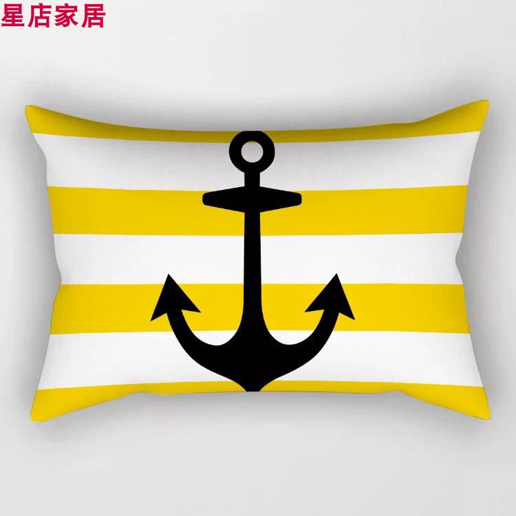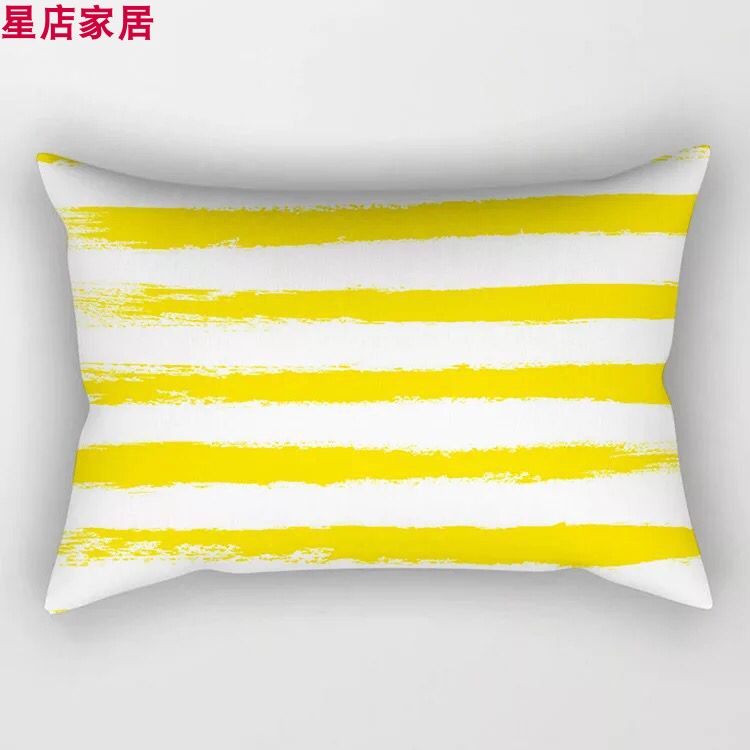 黃色雙面幾何沙發抱枕靠墊30*50長方形黃色幾何床頭腰枕網紅抱枕1入