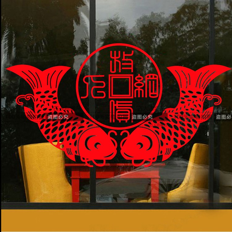 鼠年新年櫥窗玻璃裝飾貼紙 中國風春節年年有余魚墻貼畫2020年1入