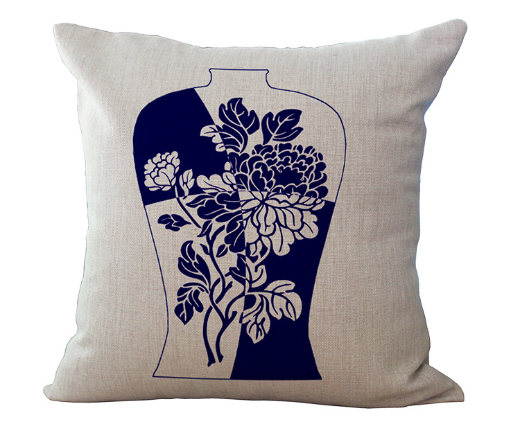 中國青花瓷棉麻抱枕靠枕古典中國風茶室靠枕紅木客廳沙發靠墊床頭1入