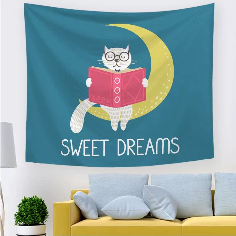 貓狗背景布ins掛布拍照網紅墻布掛毯房間宿舍布藝畫裝飾床頭掛布1入
