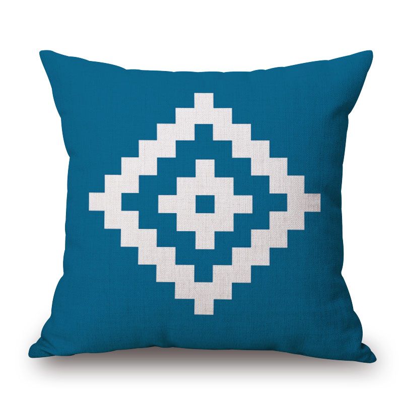 ins北歐風雙面藍色幾何圖案棉麻抱枕靠墊抱枕套客廳沙發靠墊靠枕1入