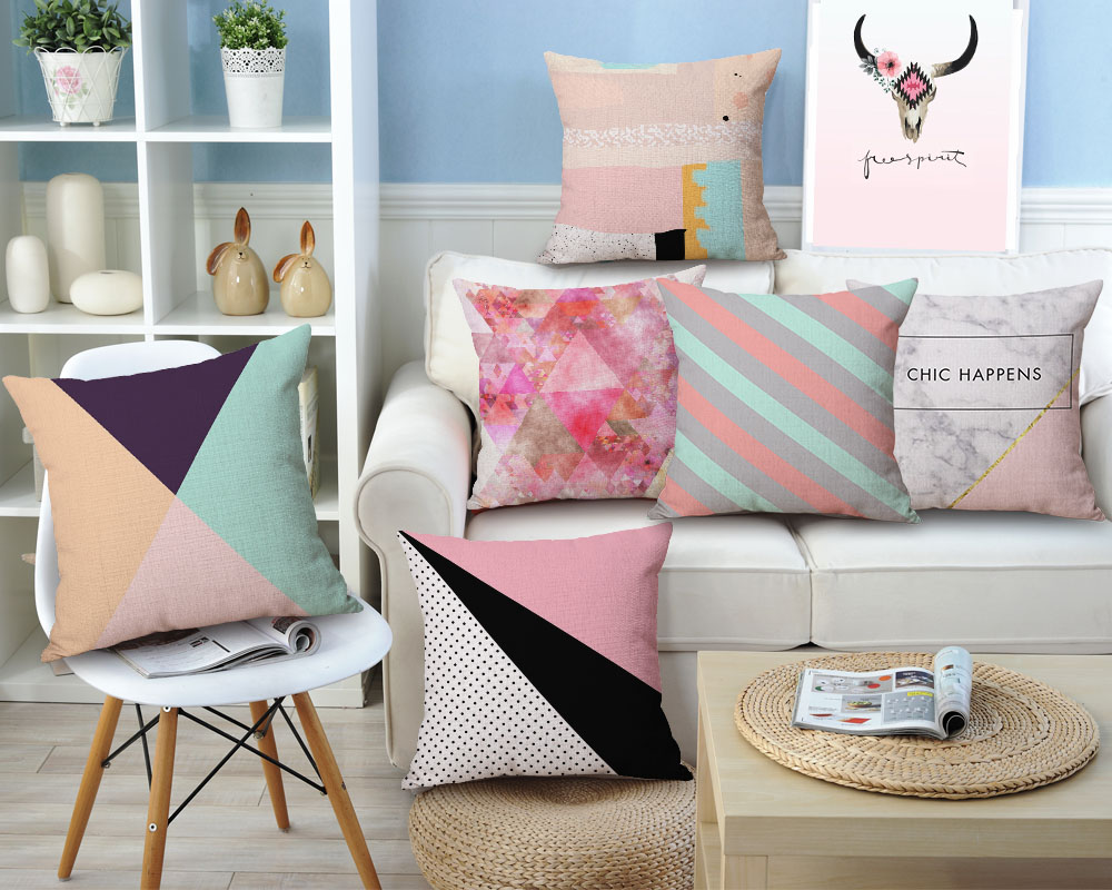 雙面大理石紋幾何抱枕枕套Cushion Cover Pillows少女粉條紋抱枕1入