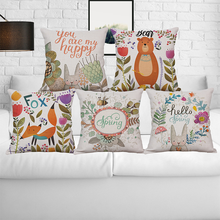 韓式卡通兔子動物手繪少女抱枕枕套靠墊套Cushion Cover Pillows1入