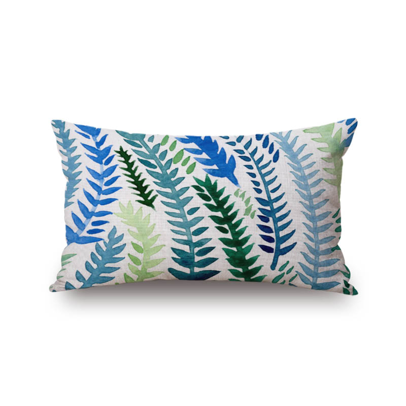 長形腰枕棉麻雙面抱枕美式鄉村熱帶風彩色植物沙發抱枕長方形靠枕1入