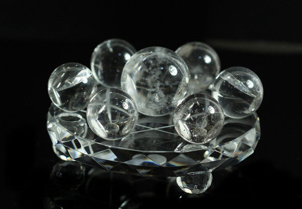 【材質】天然白水晶球 尺寸:底盤直徑12厘米,中間球直徑3厘米邊球直徑2.5厘米左右【水晶球為純天然水晶,晶體通透,內有少許棉絮、裂痕,質量保證,假一賠十】