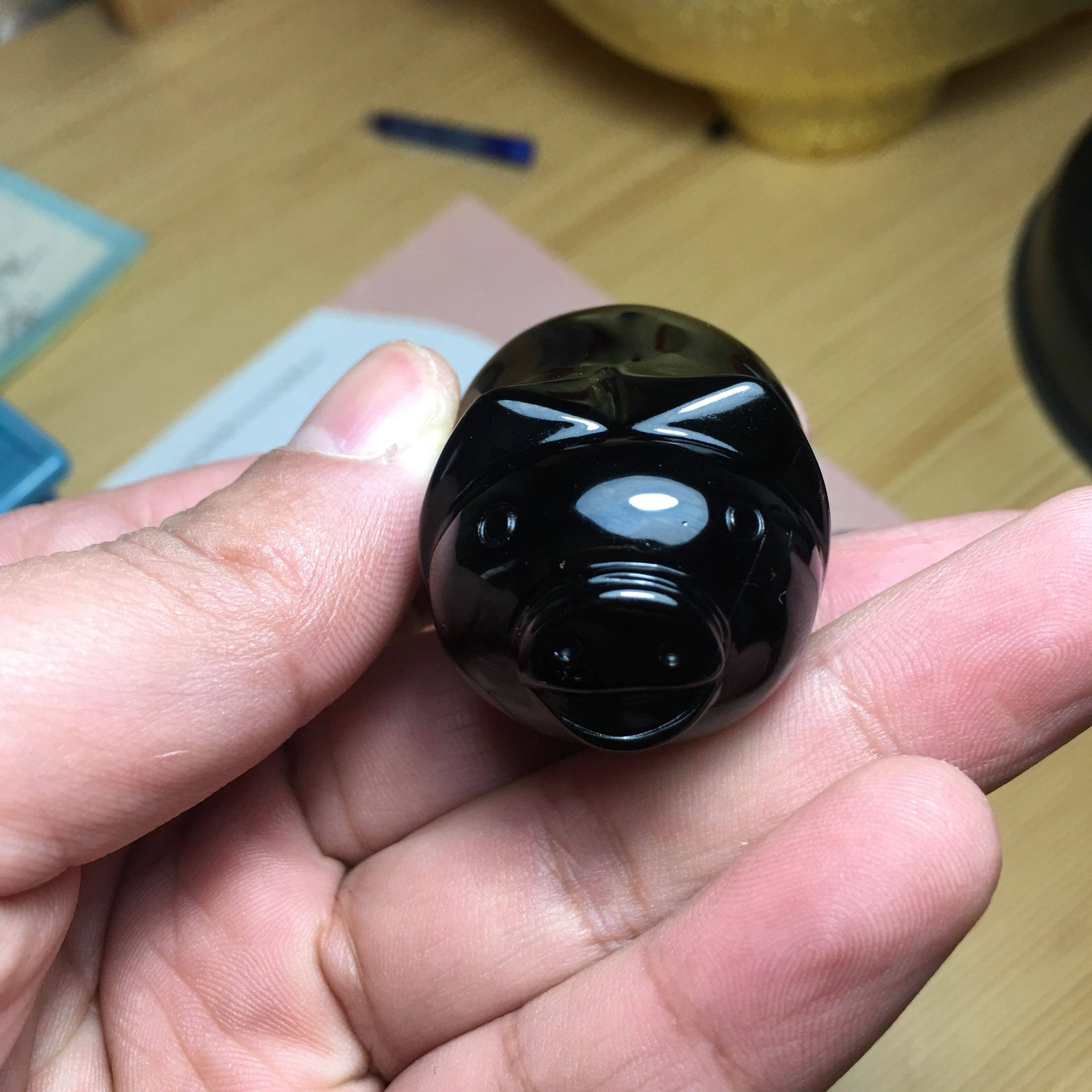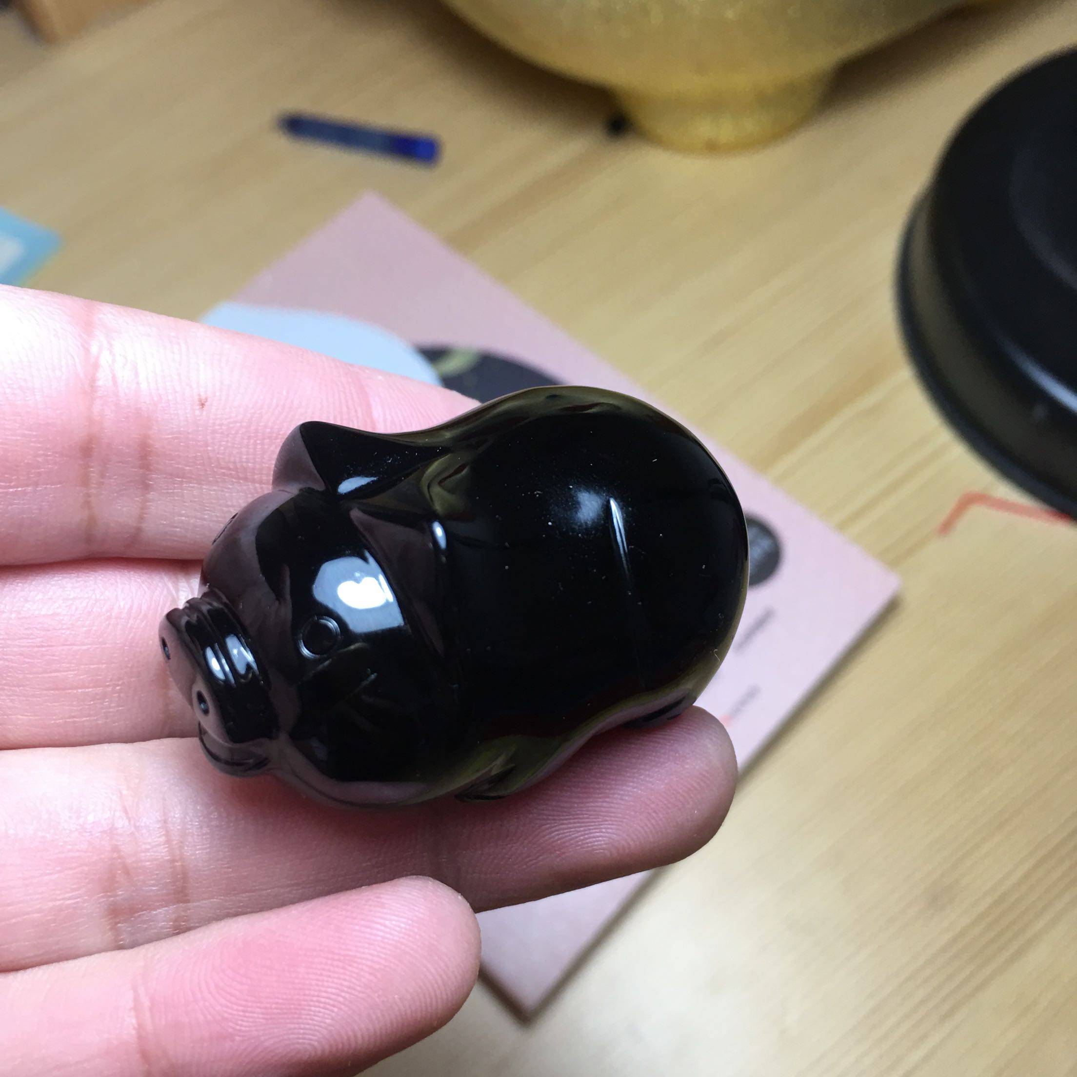 正品 精雕天然黑曜石5厘米小黑豬擺件 黑水晶豬擺件 生肖小豬擺件1入