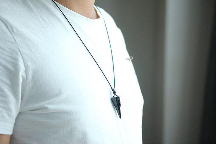 正品天然黑曜石錐形體吊墜項鏈男女款占卜問事錐形黑曜石靈擺吊墜1入