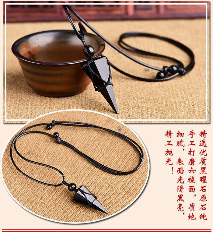黑曜石吊墜占卜問事 錐形黑曜石靈擺,純手工制作,每件規格都不同,規格隨機發貨。