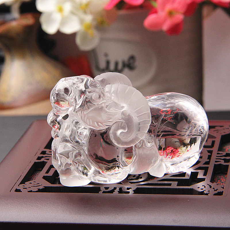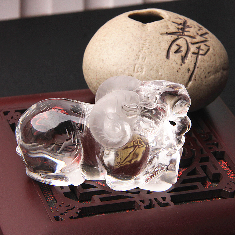 正品 精雕天然白水晶小羊小擺件 白水晶羊把玩件水晶生肖羊擺件1入