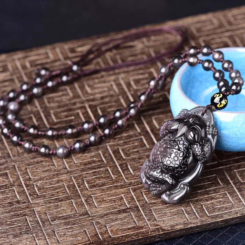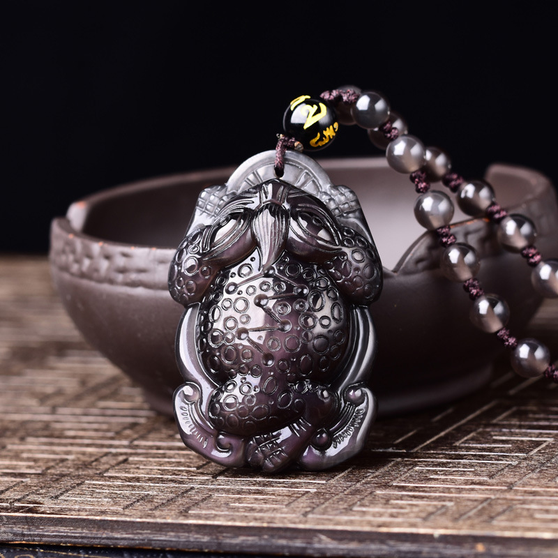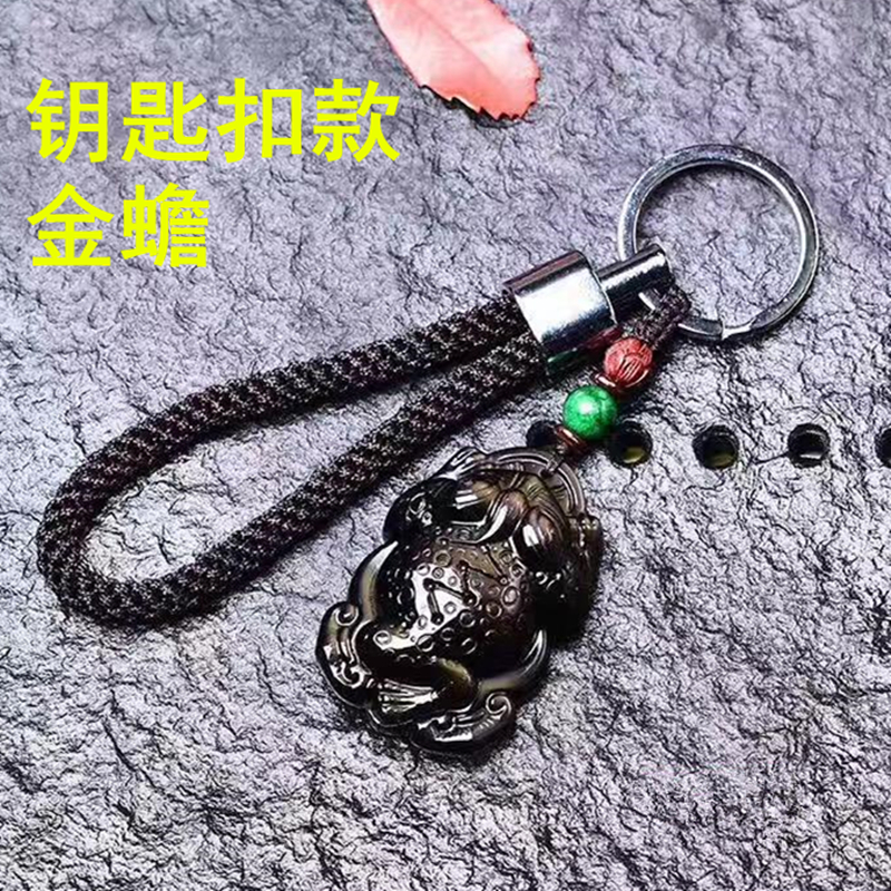 開光天然黑曜石金蟾吊墜三腳三足冰彩蟾蜍金蟬招財鑰匙扣項鏈水晶1入