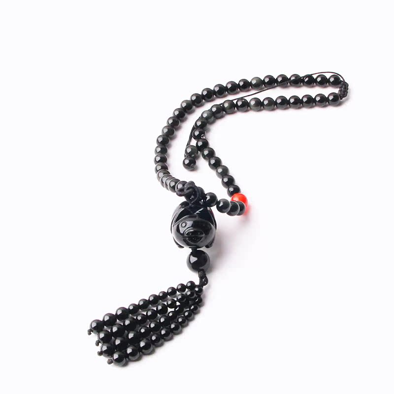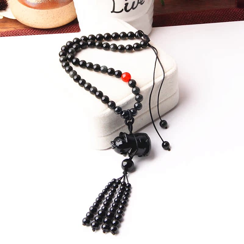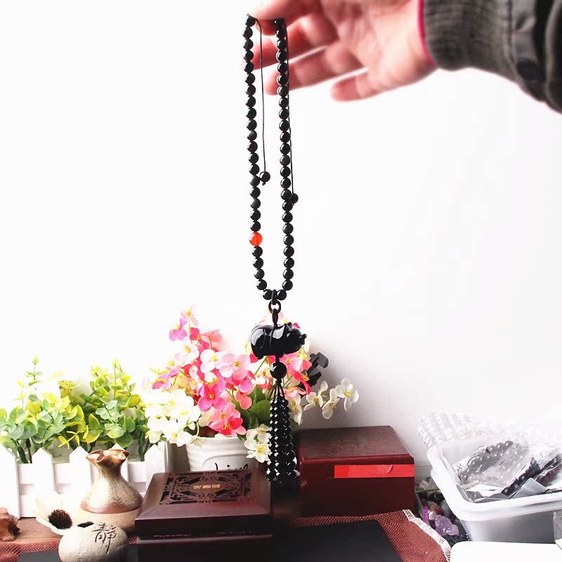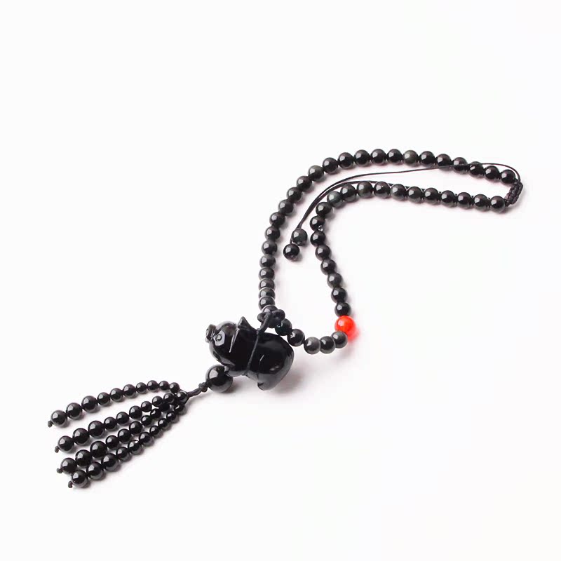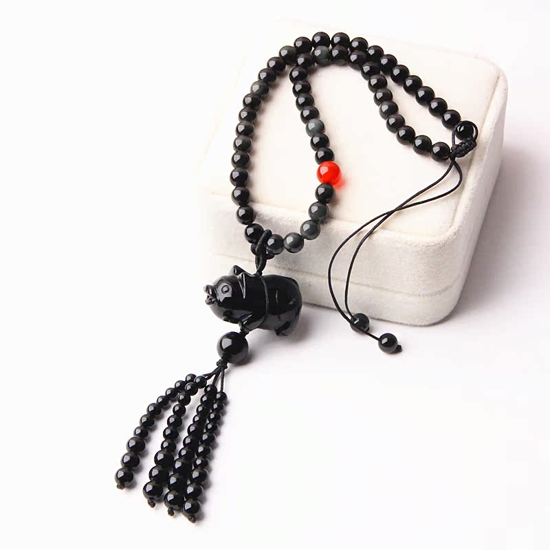 規格:車掛總長度26厘米左右,天然黑曜石精雕豬吊墜。