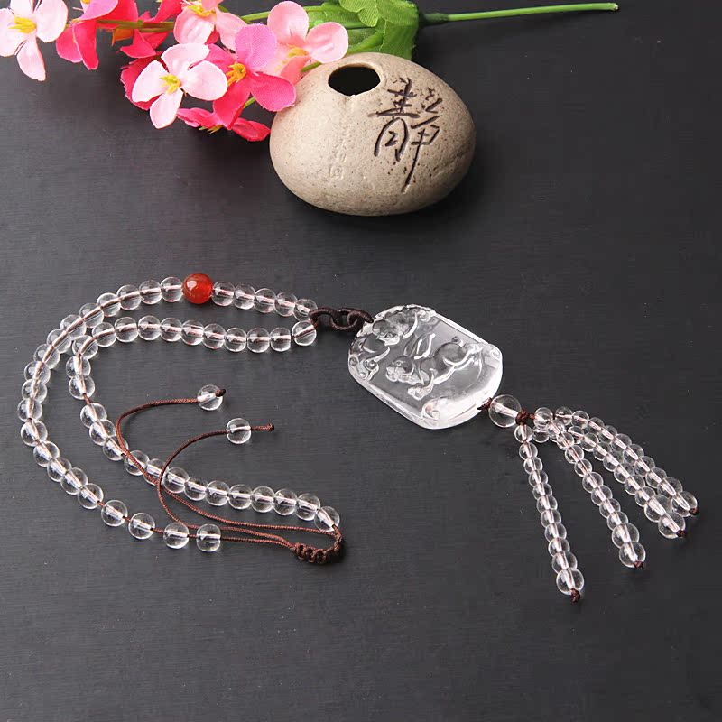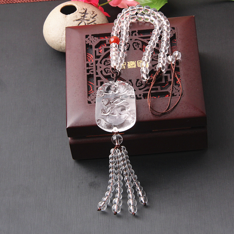 原創設計天然白水晶生肖車掛定制。買家可根據自己需要生肖分類選擇生肖樣式。我們會竭誠為您編制。
