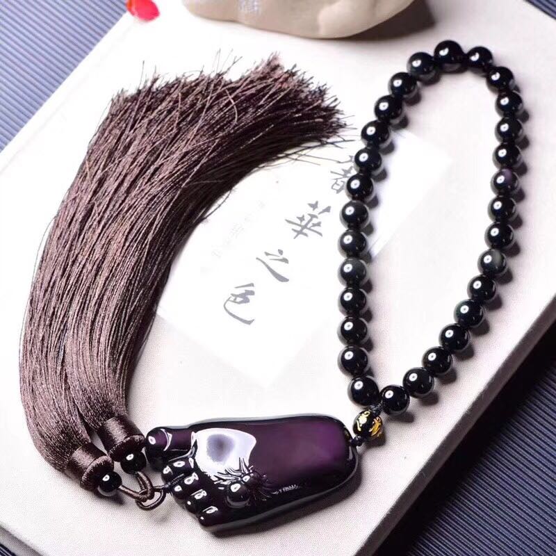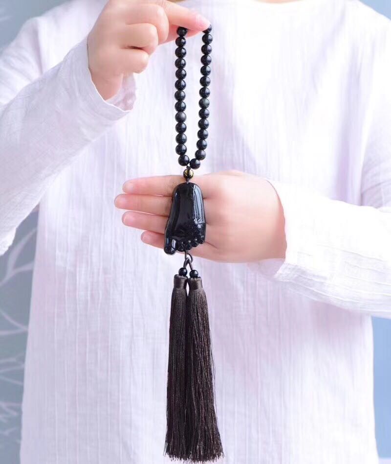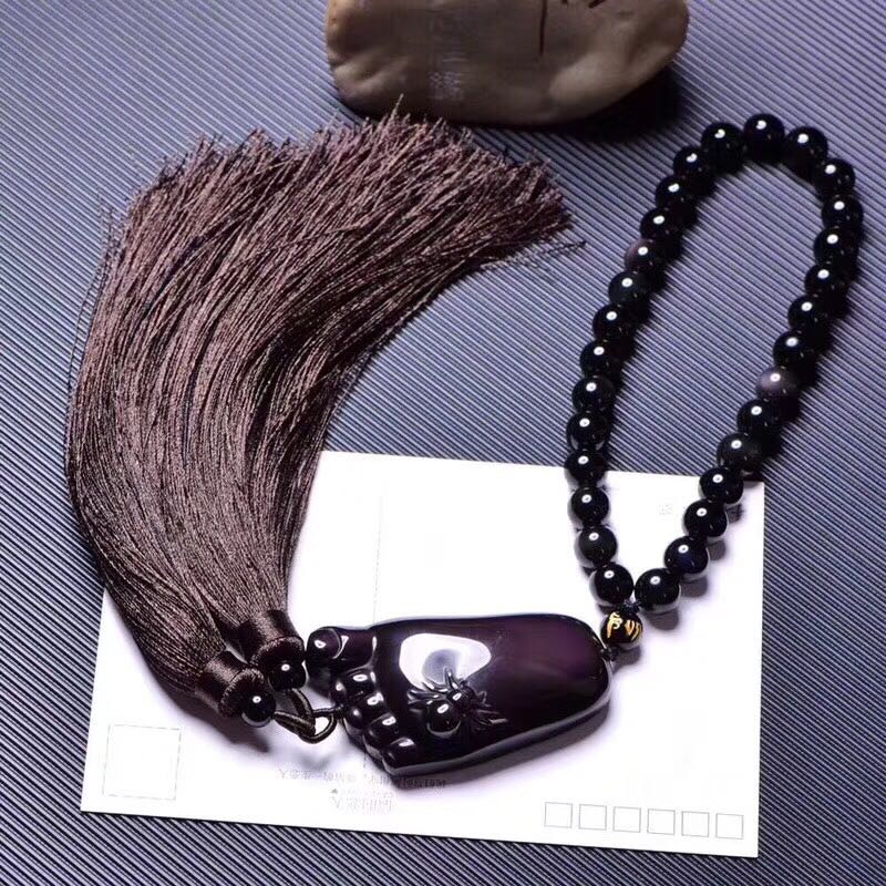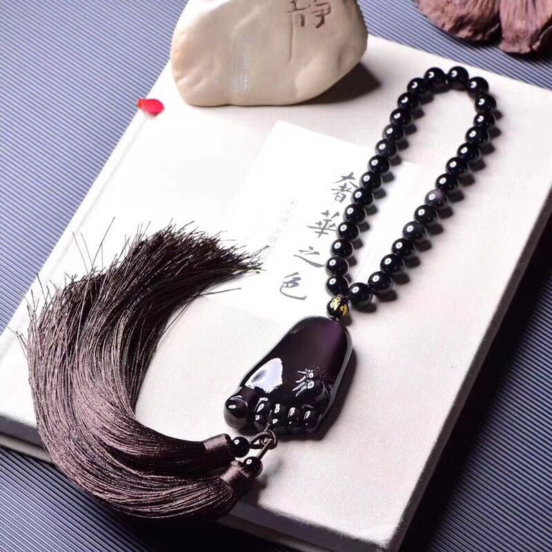 正品 天然彩虹眼黑曜石知足常樂車掛吊墜 招財辟邪小腳丫吊墜掛墜1入