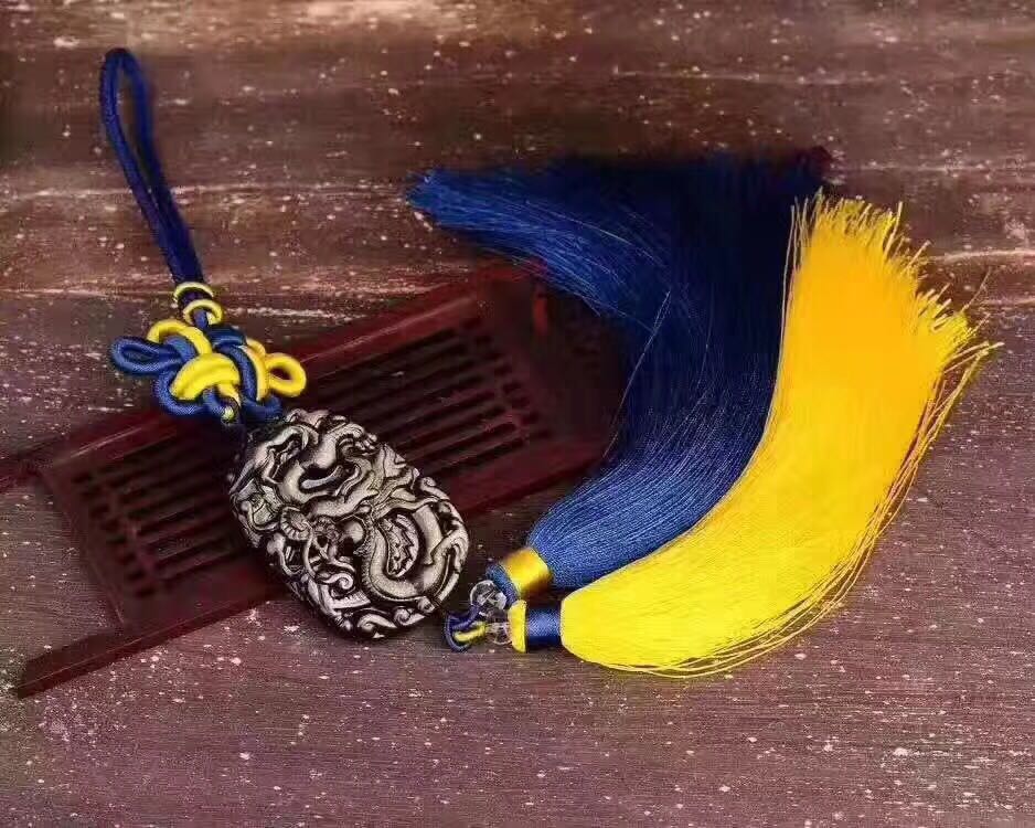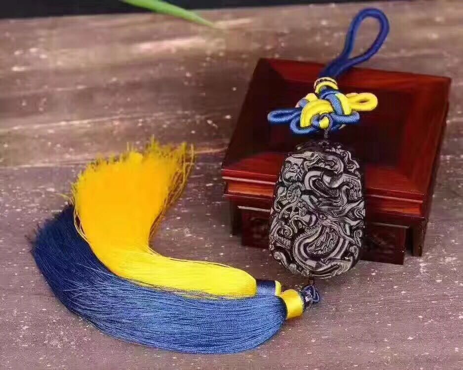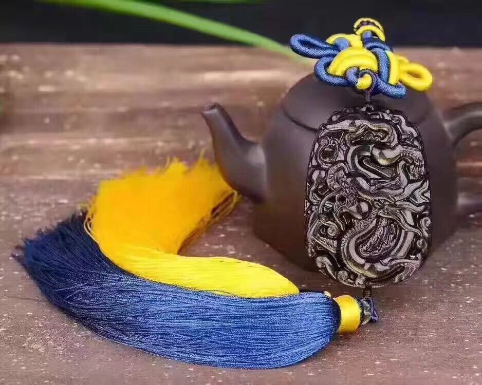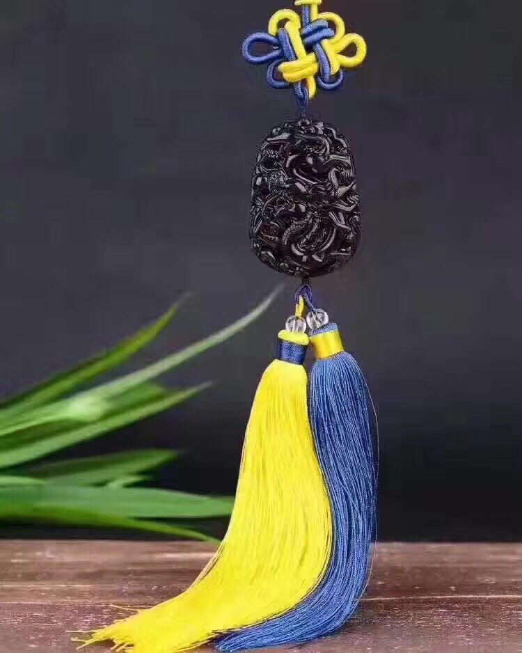 天然金曜石龍牌車掛 手工編織 招財辟邪 吊墜尺寸:62*43*10 MM