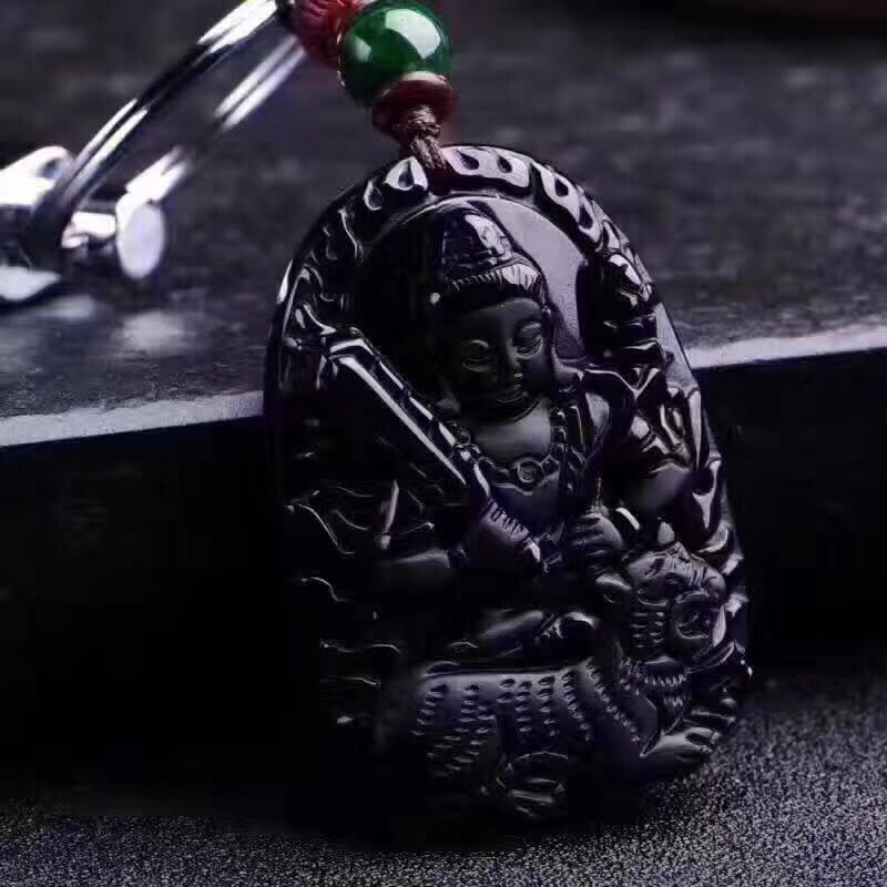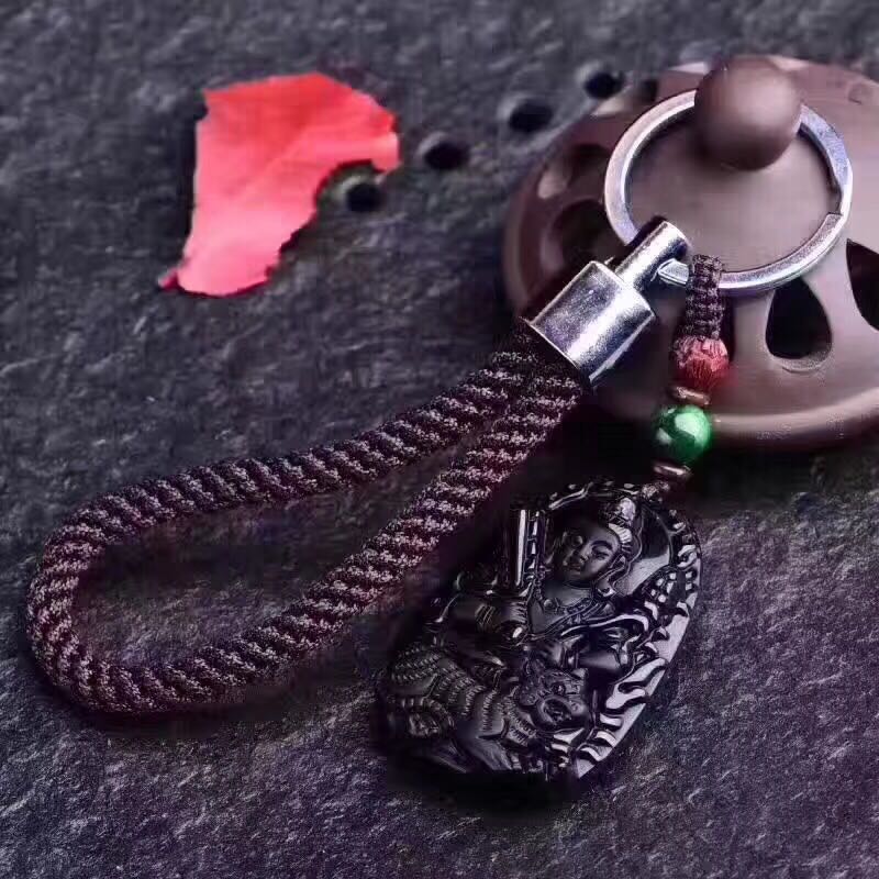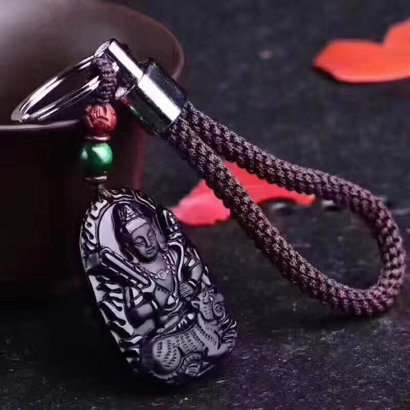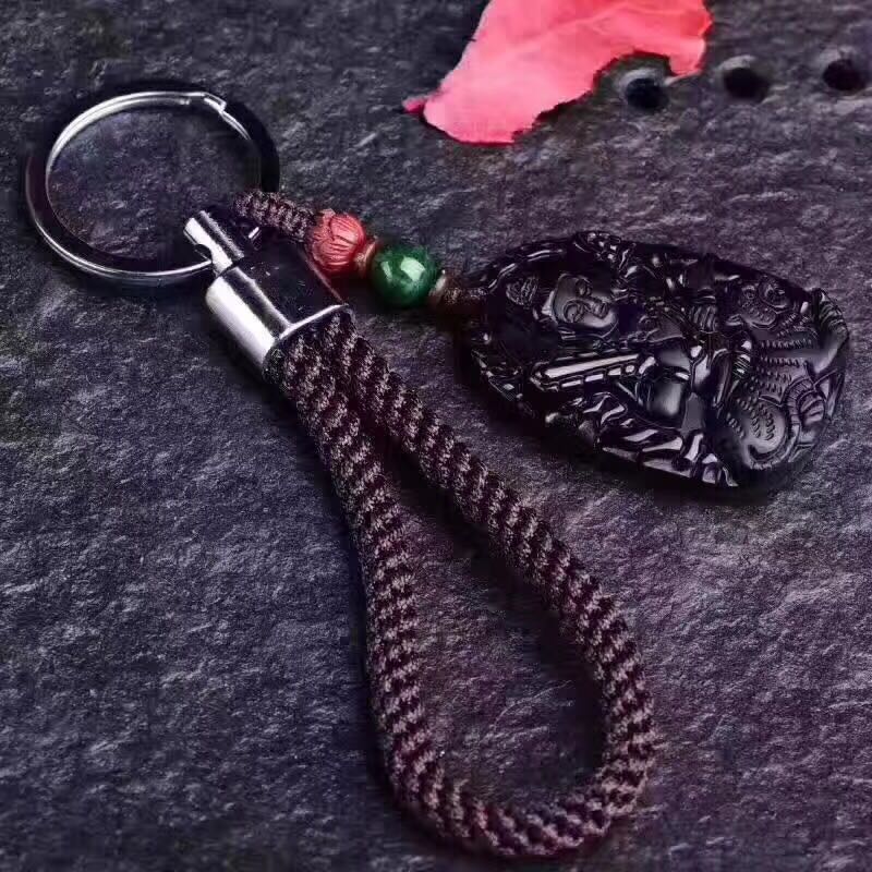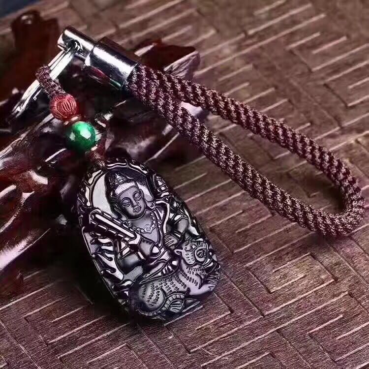正品天然黑曜石生肖虎守護神 虛空藏菩薩汽車鑰匙扣招財辟邪吊墜1入