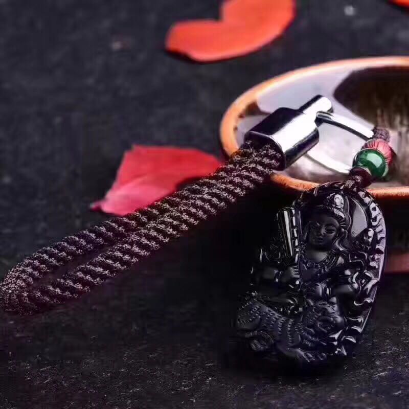 天然黑曜石生肖虎守護神 虛空藏菩薩(虎)汽車鑰匙扣注:純手工編織掛繩,招財辟邪吊墜尺寸:47*32*11MM