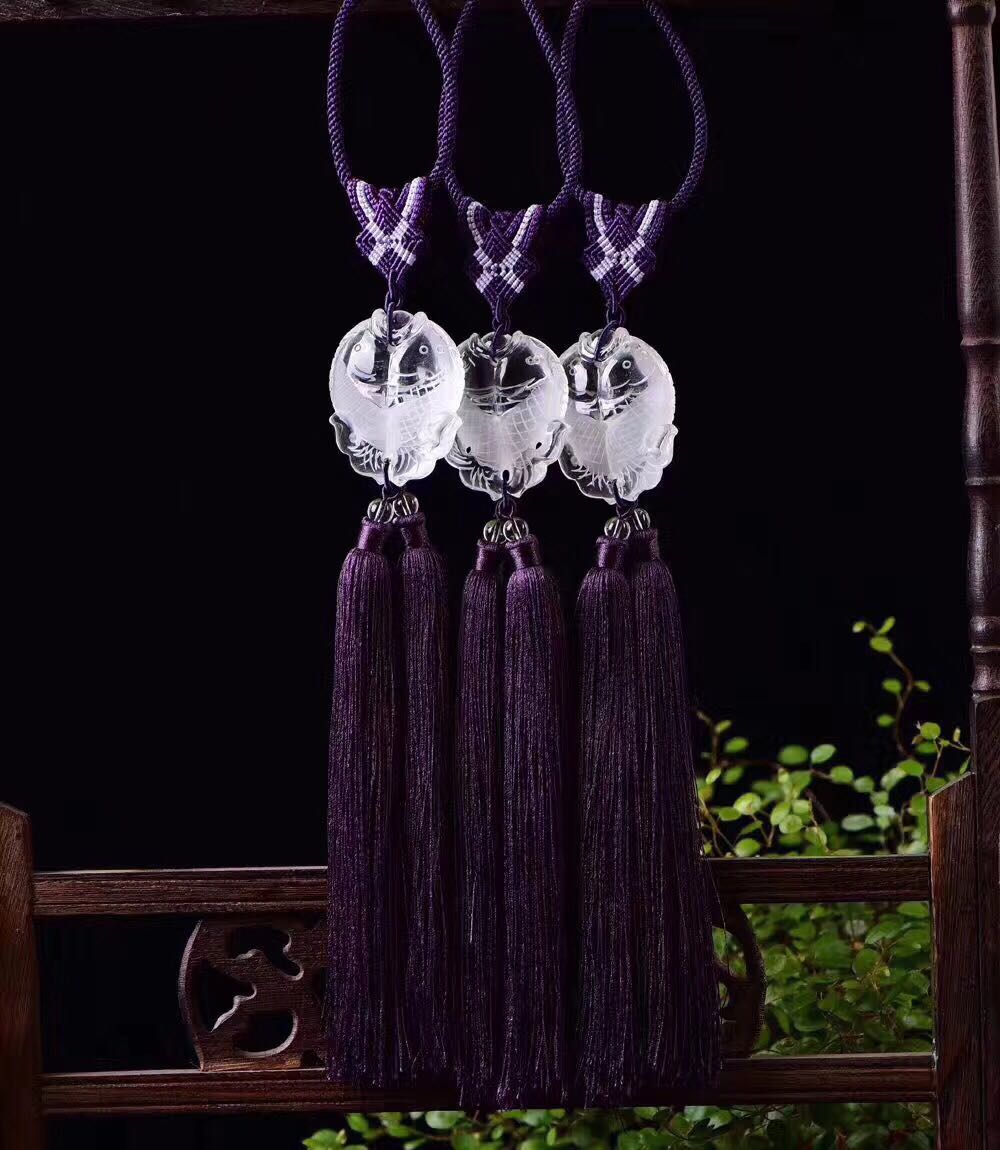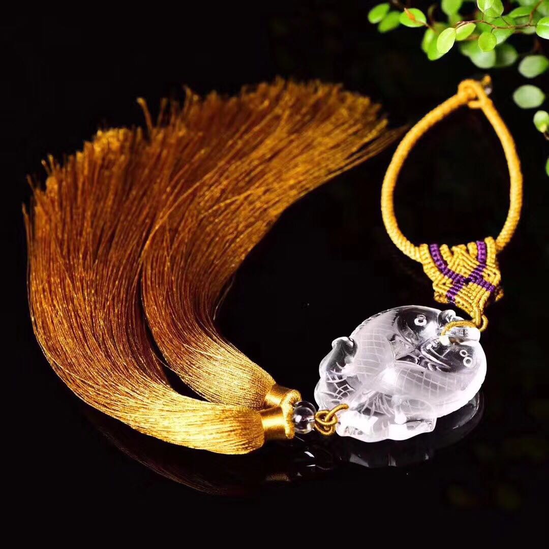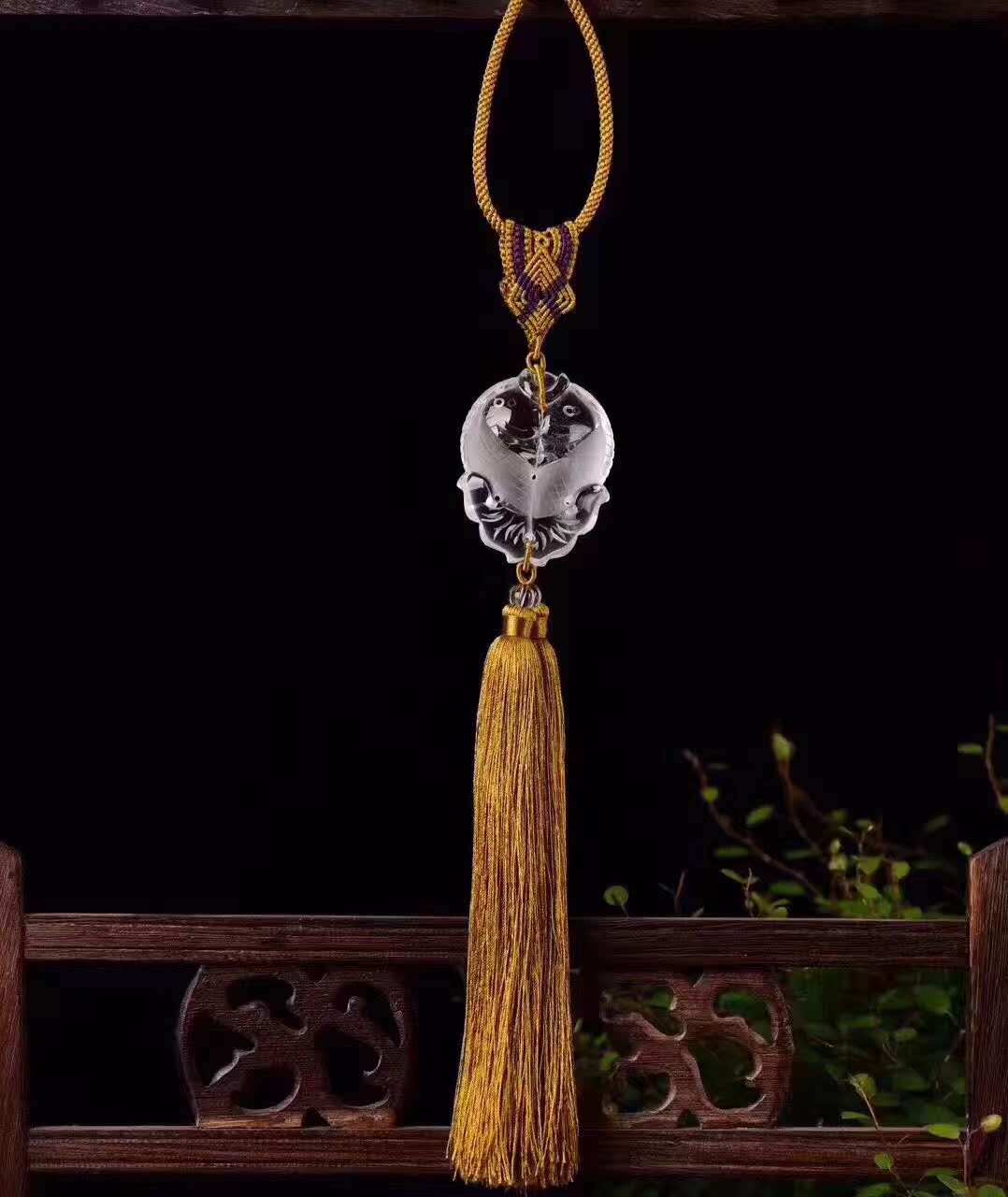 天然白水晶雙魚車掛、純手工編織流蘇!精致雕工精美手工!貨源多多
