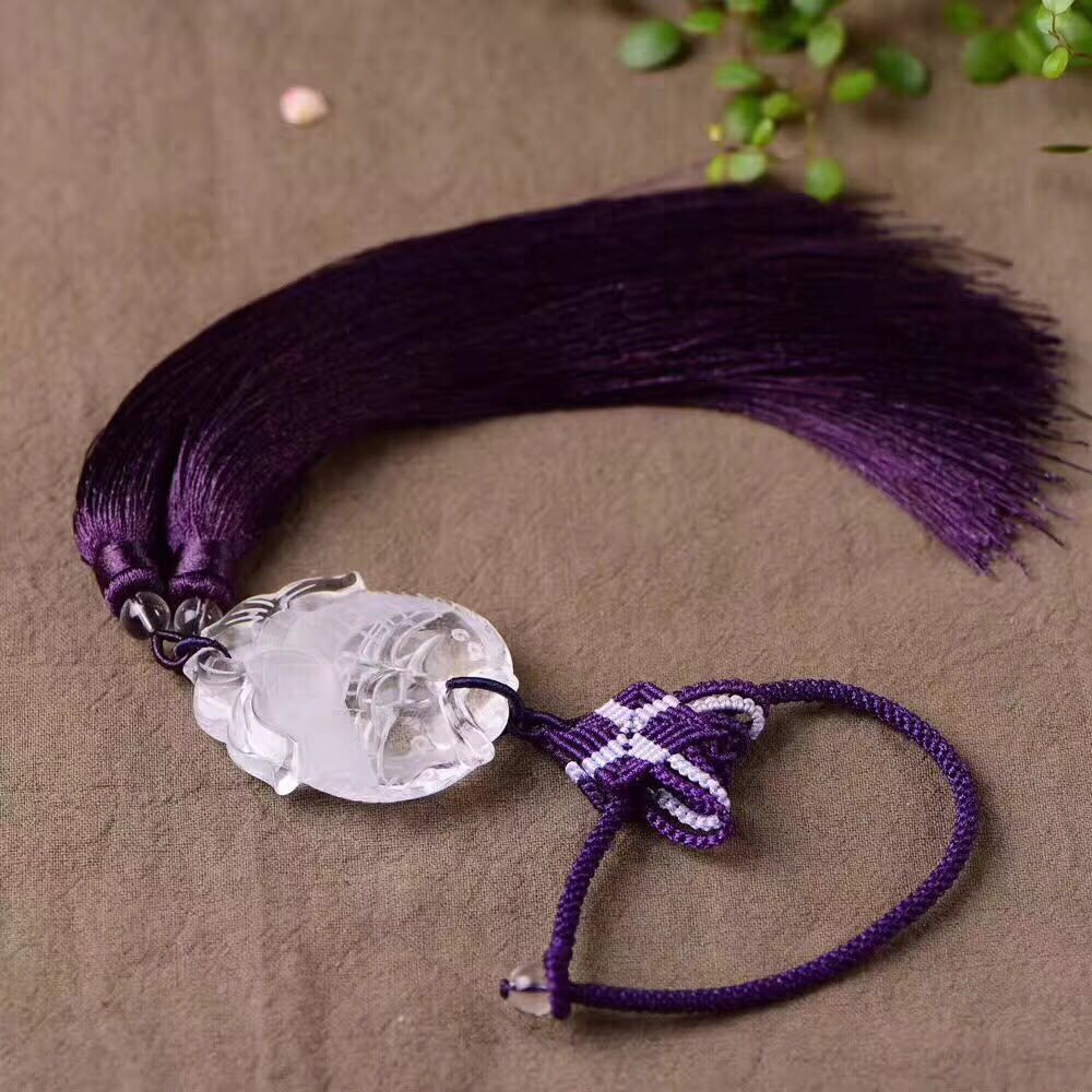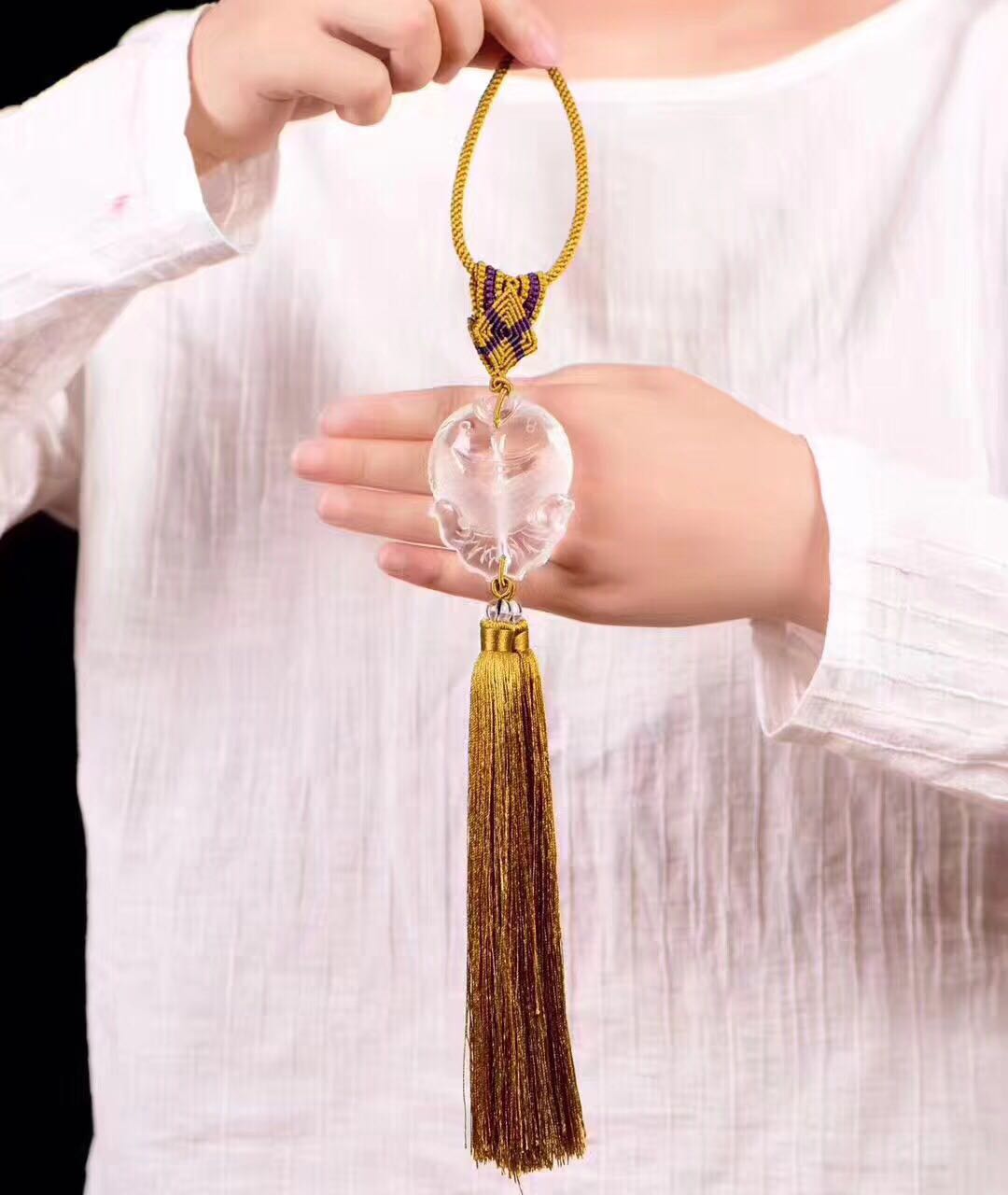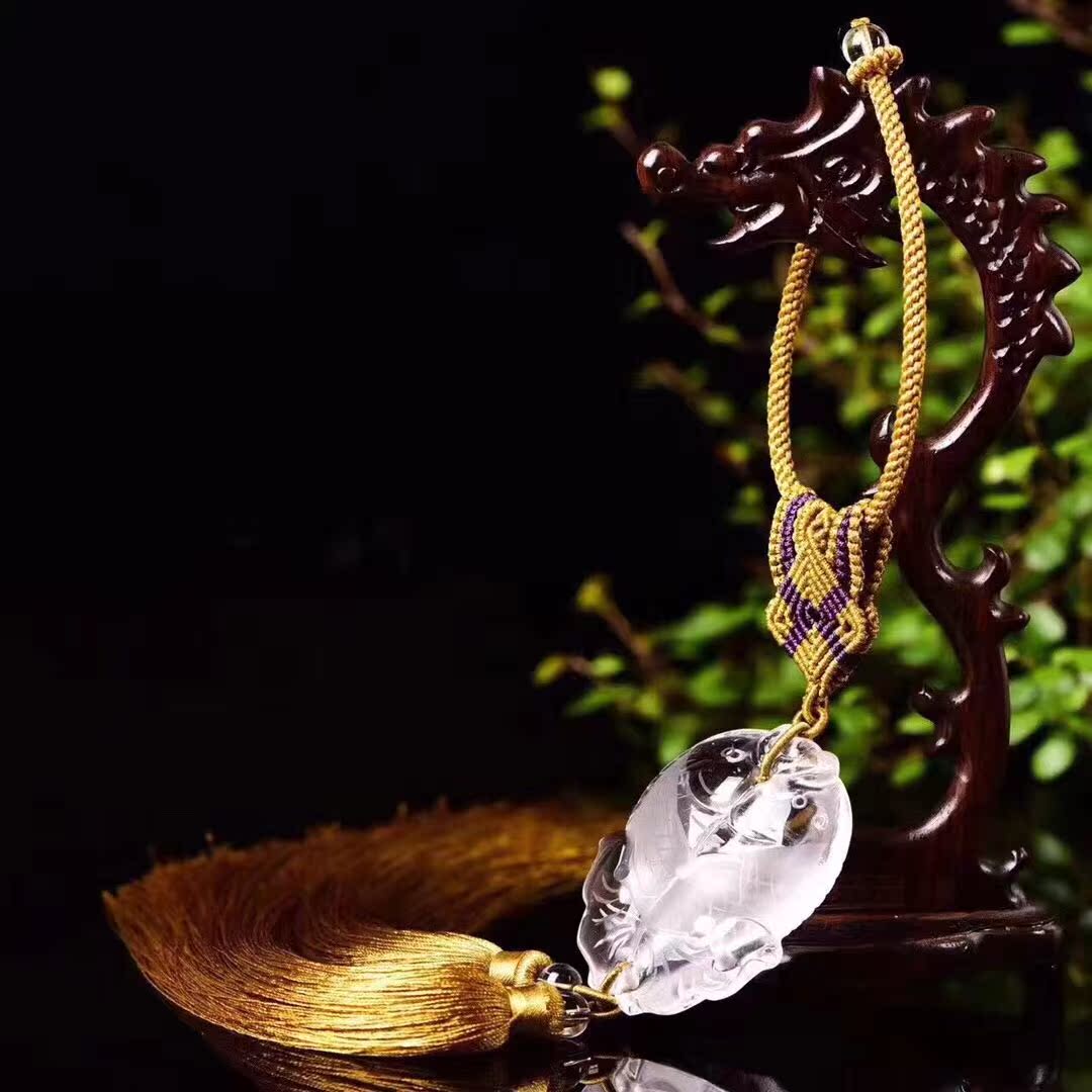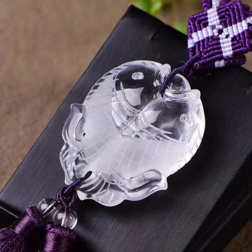 天然白水晶雙魚車掛、純手工編織流蘇!精致雕工精美手工!貨源多多