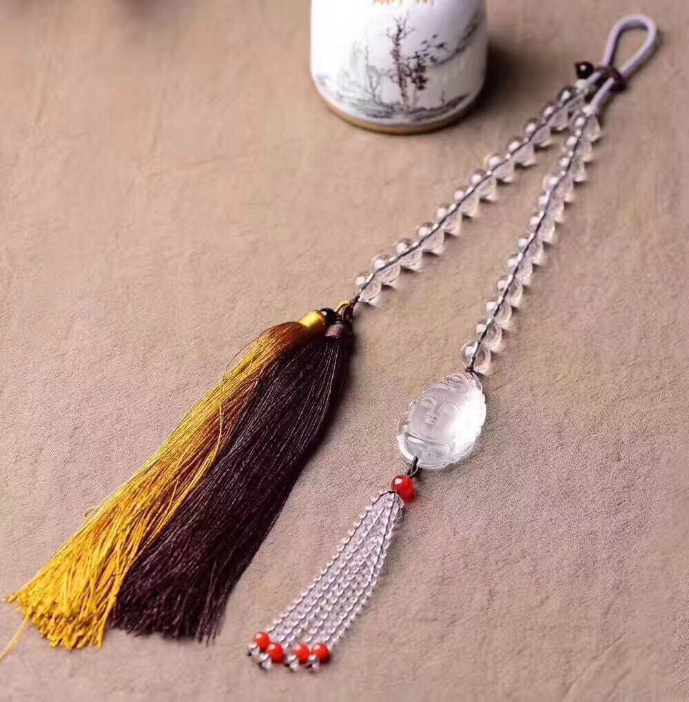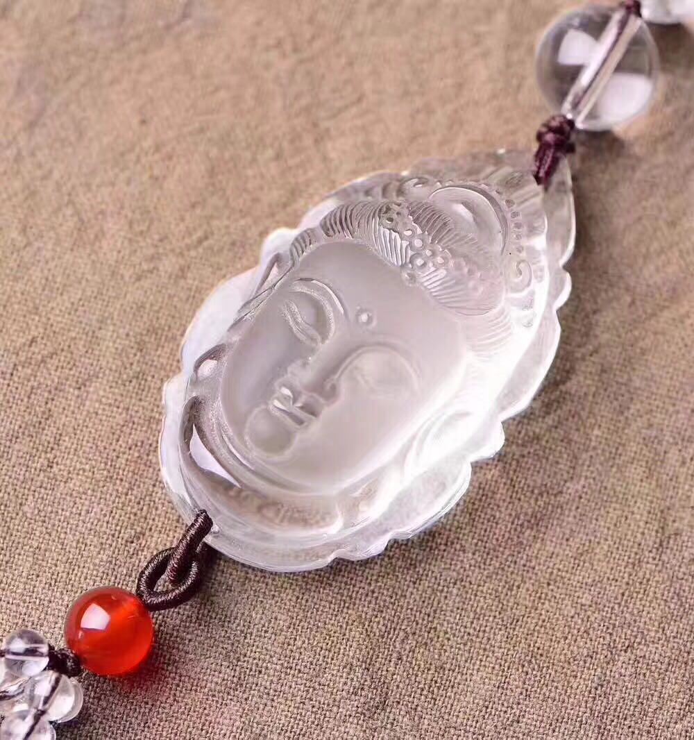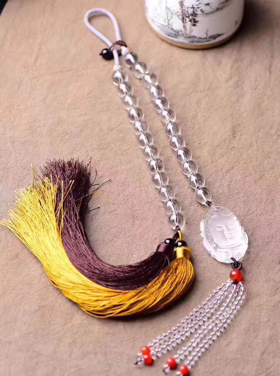 天然白水晶觀音頭車掛、手工編織、白水晶圓珠,時尚大氣!貨源多多
