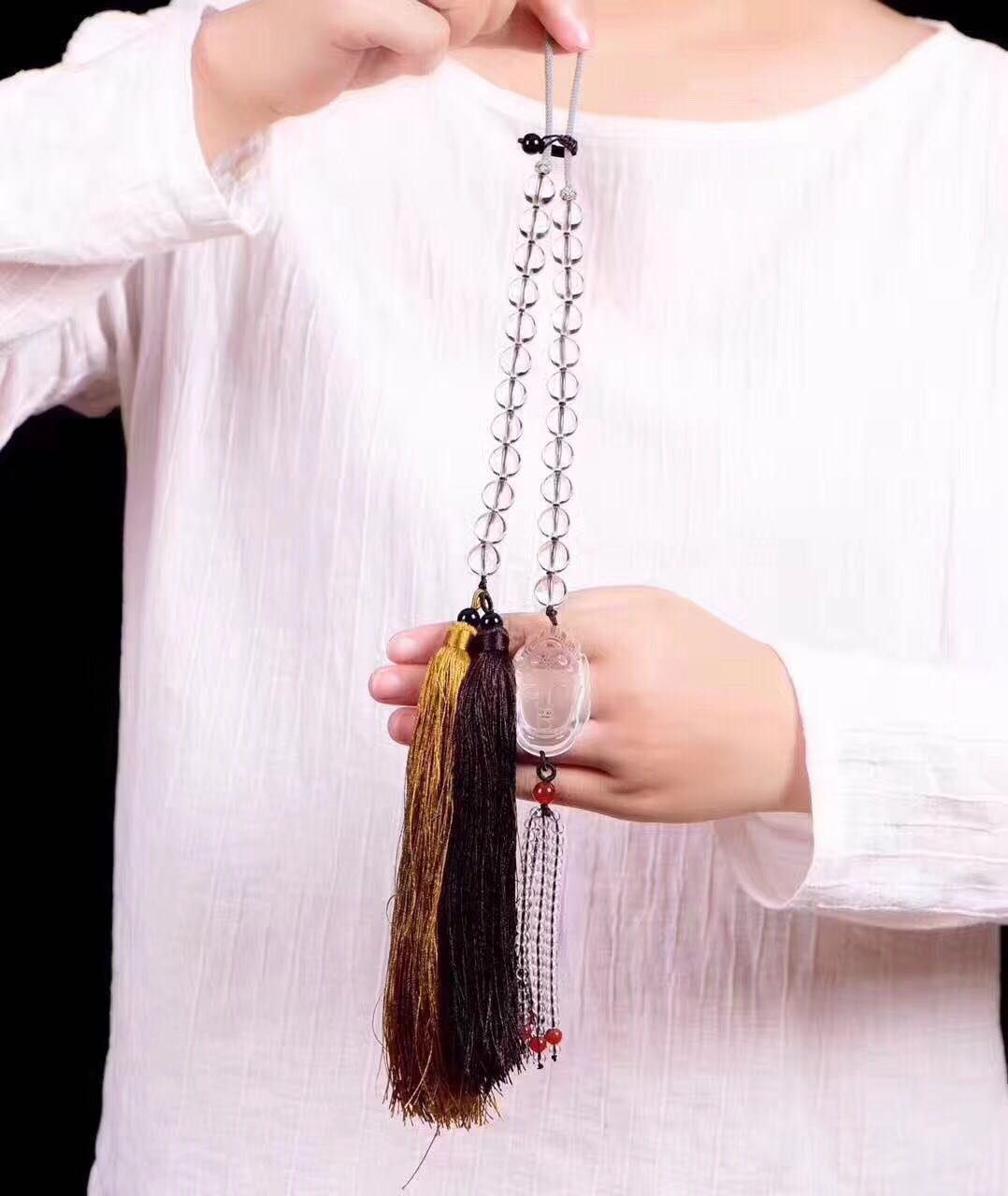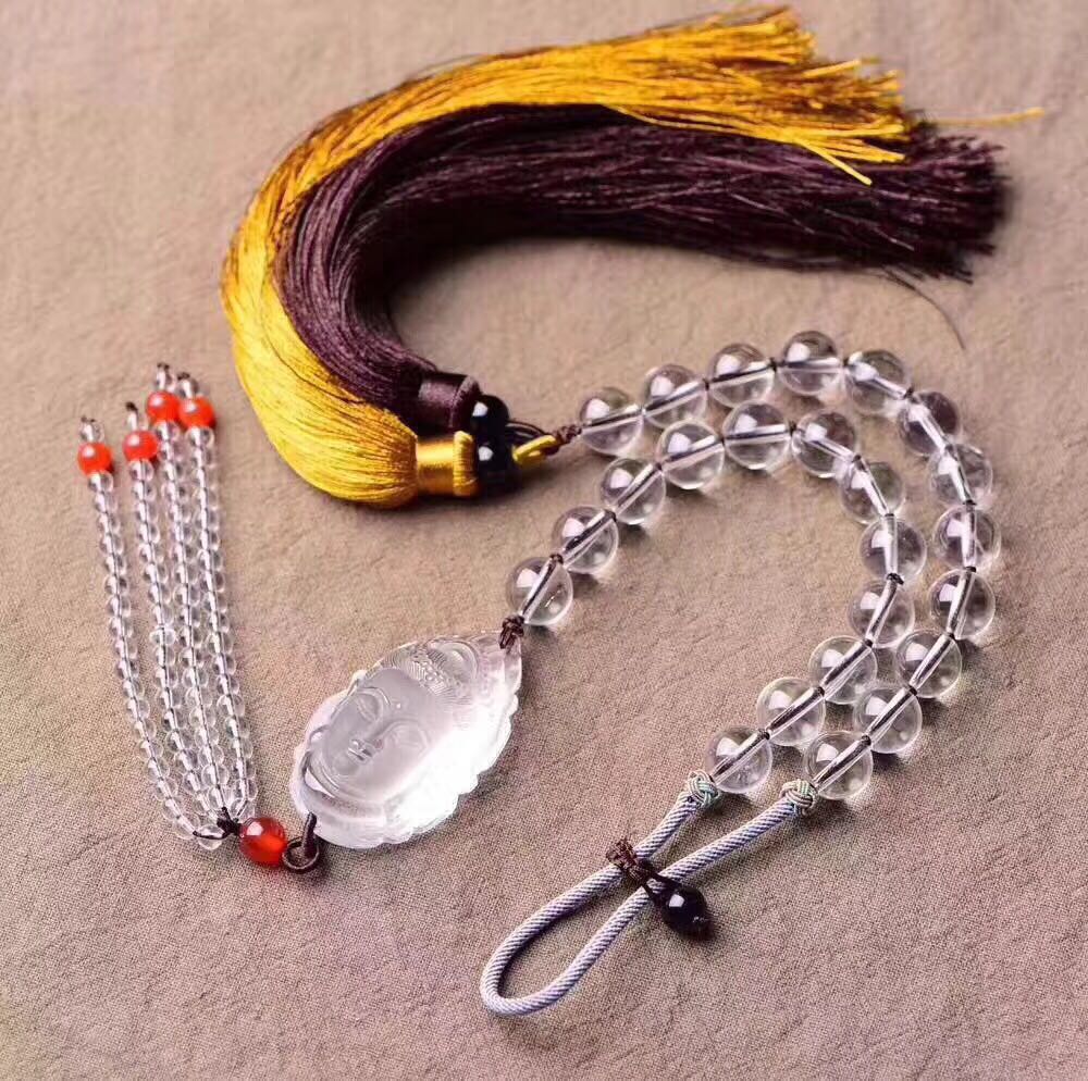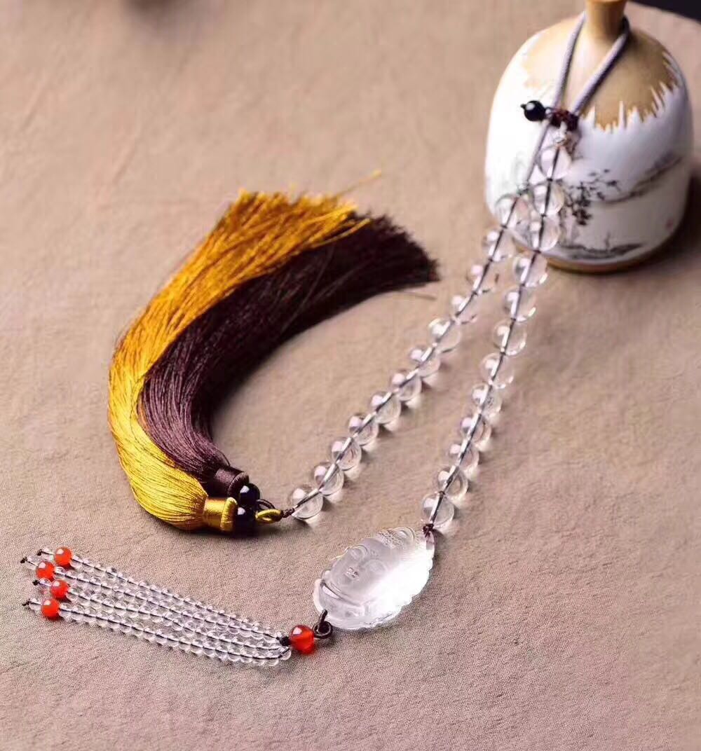 天然白水晶觀音頭車掛、手工編織、白水晶圓珠,時尚大氣!貨源多多
