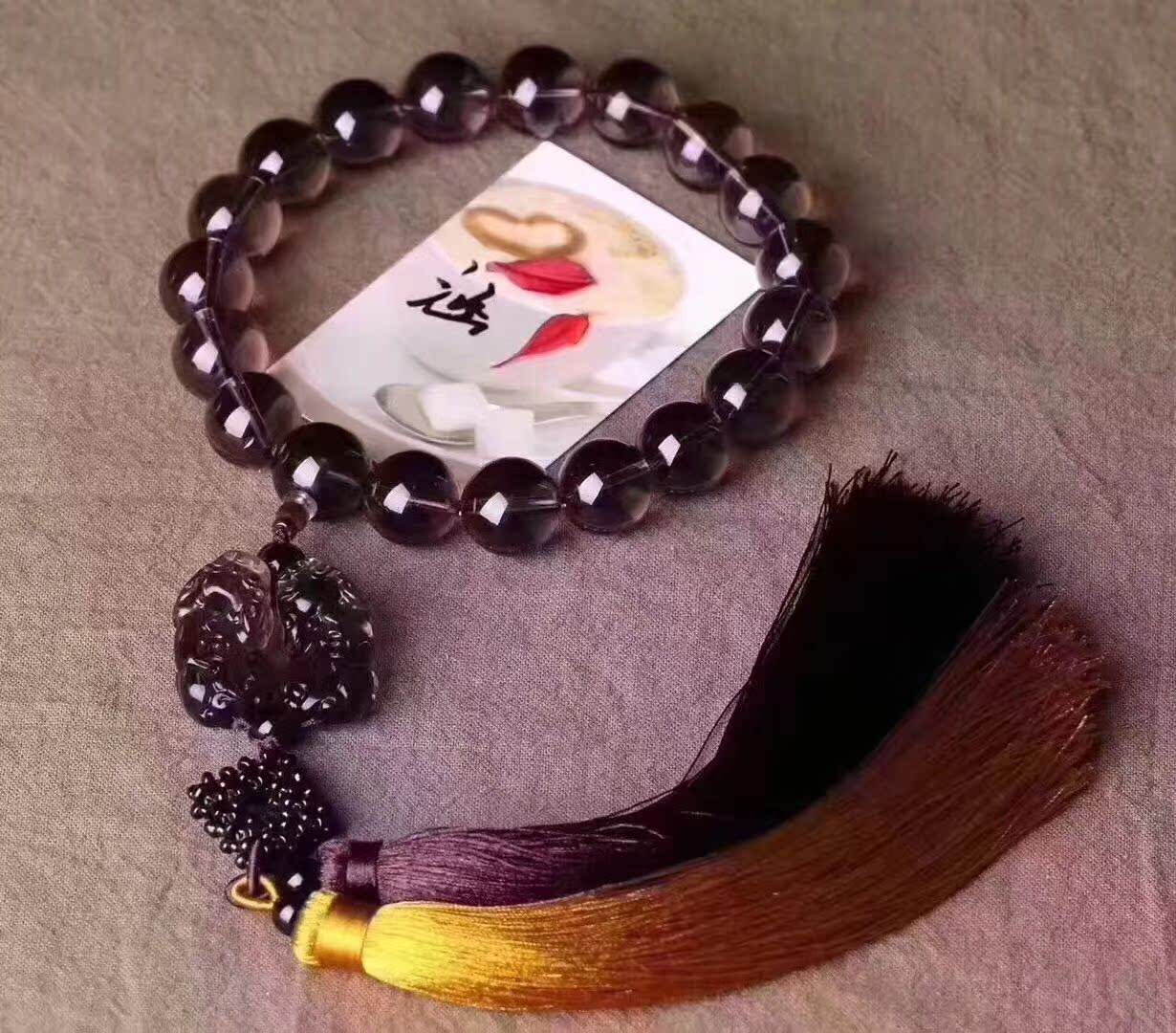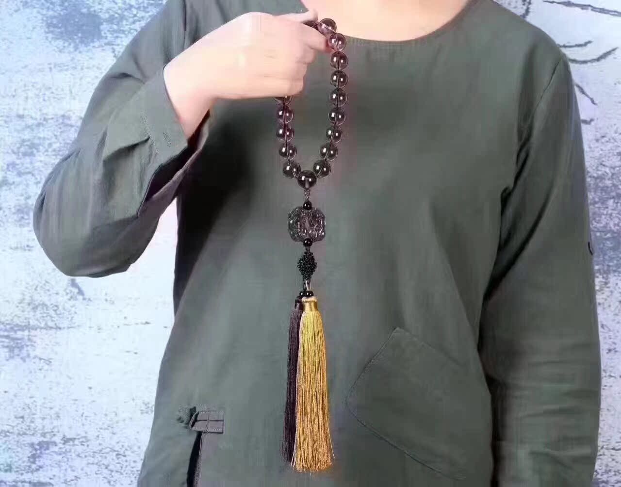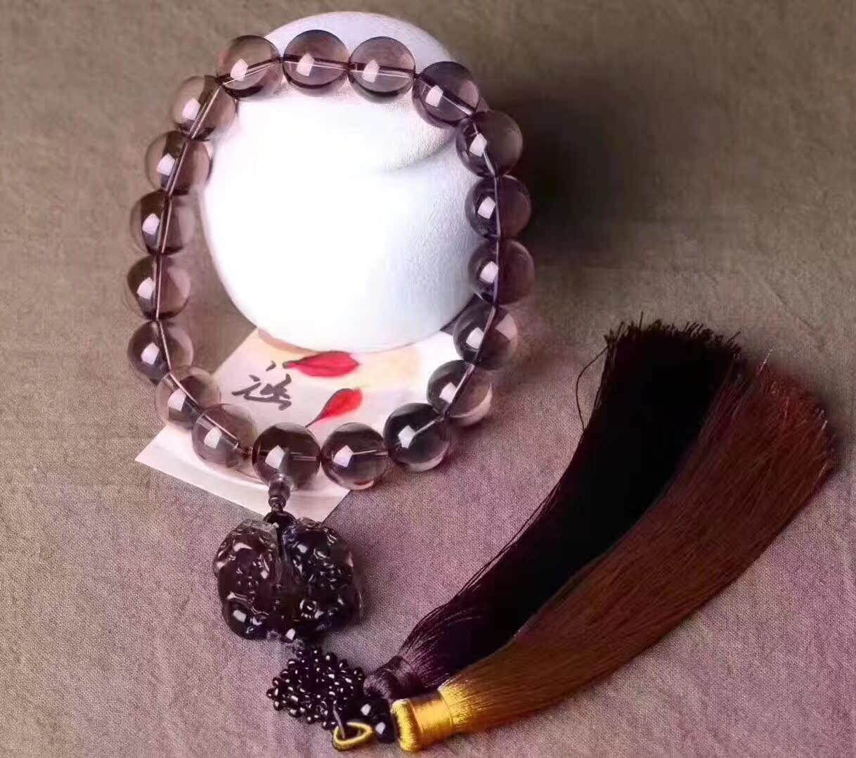 正品天然茶水晶18顆圓珠念珠車掛茶水晶貔貅念珠車飾水晶念珠手鏈1入