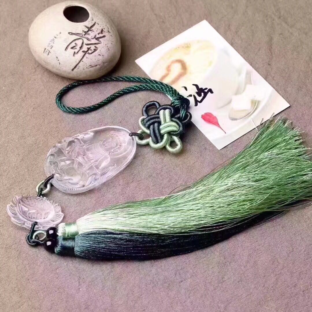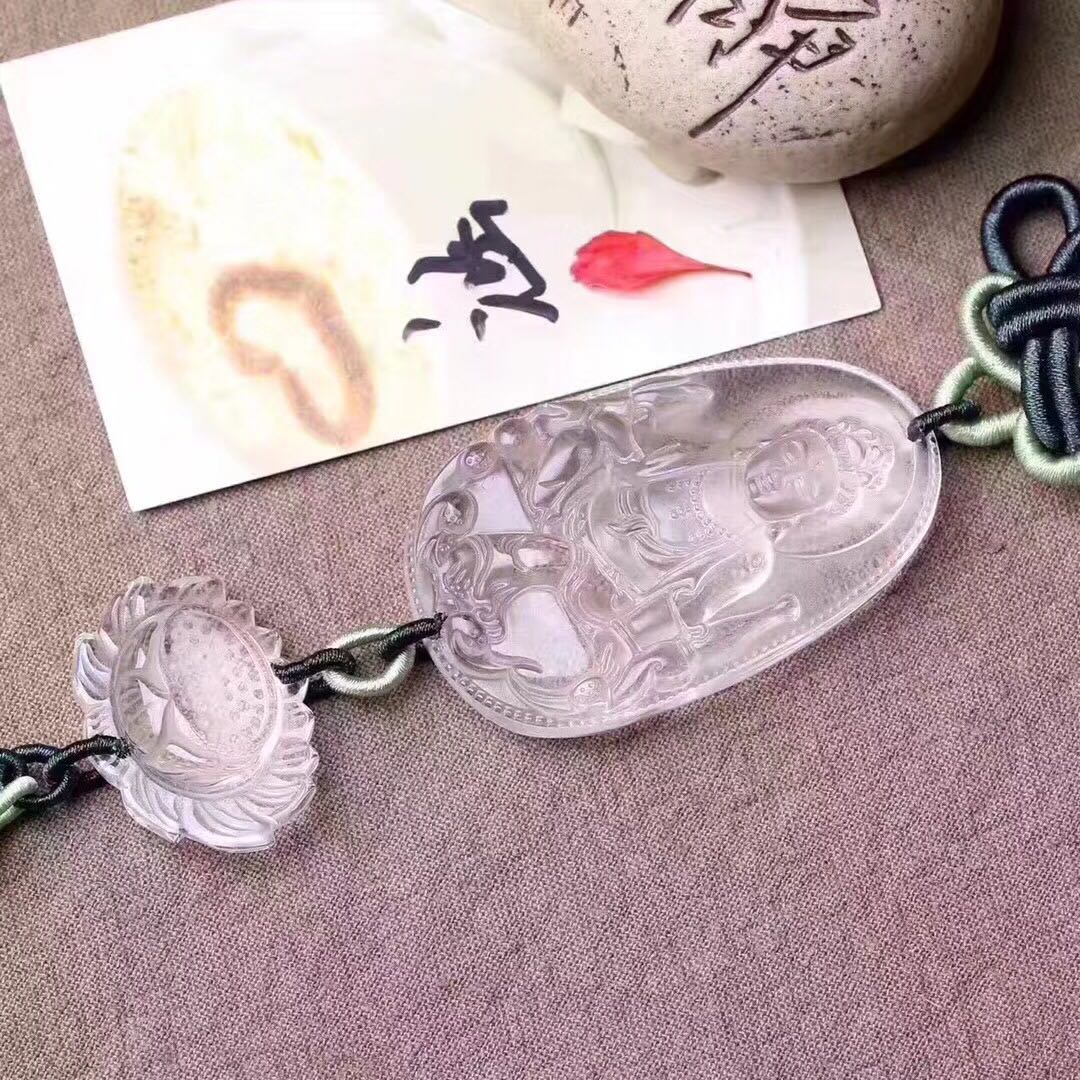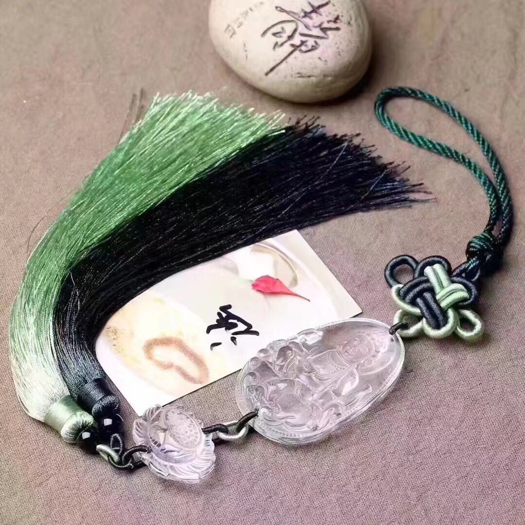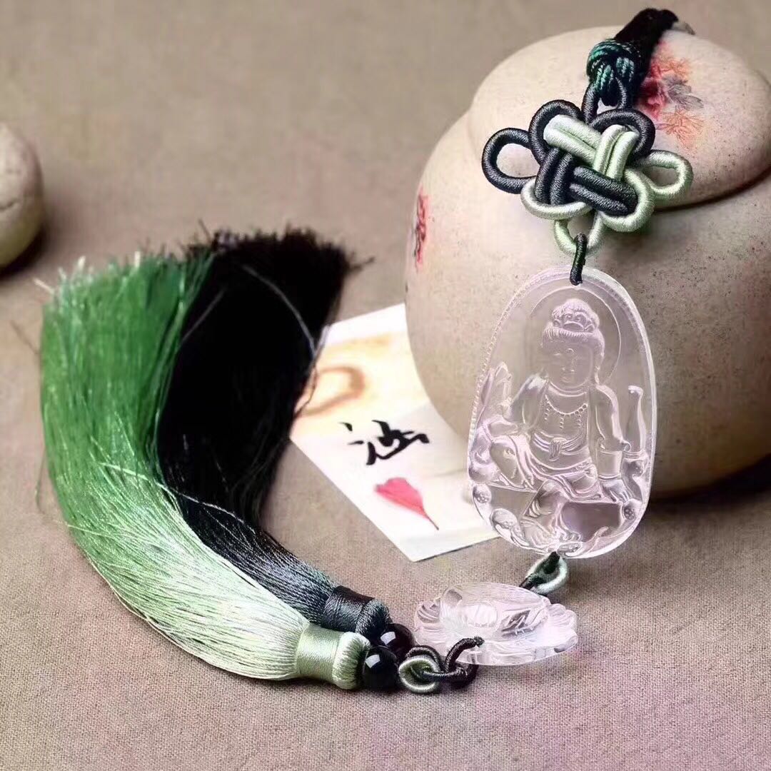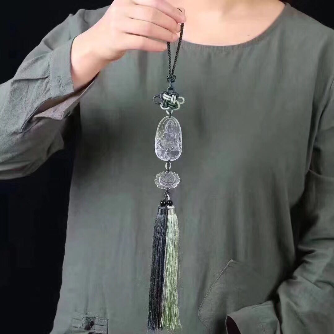 正品天然白水晶蓮花觀音車掛吊墜 平平安安車掛 手工編織流蘇吊墜1入