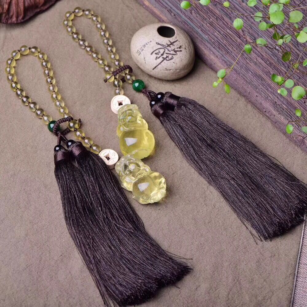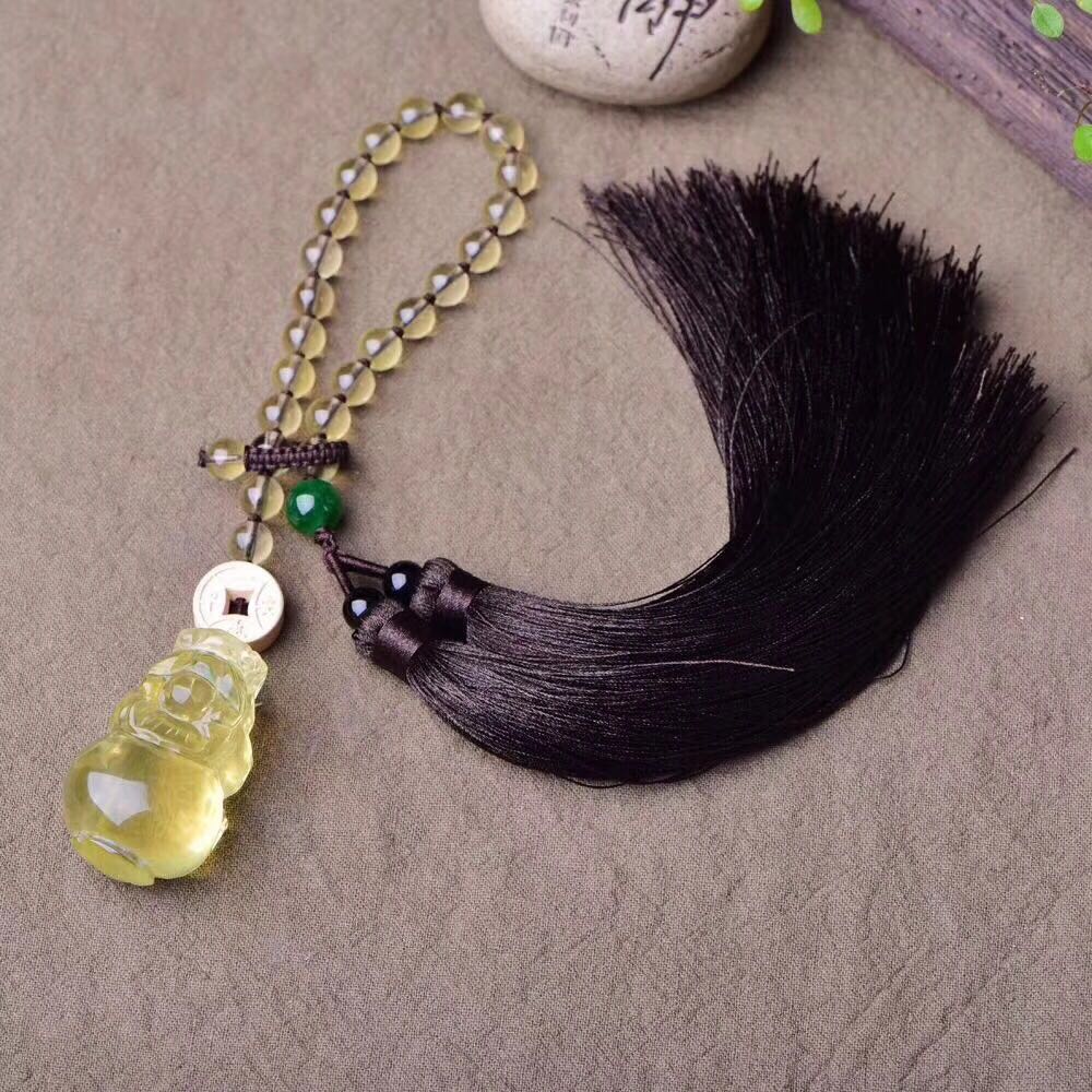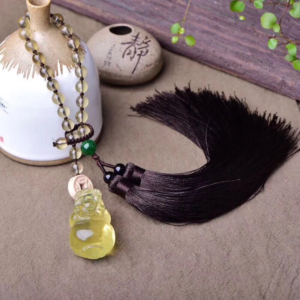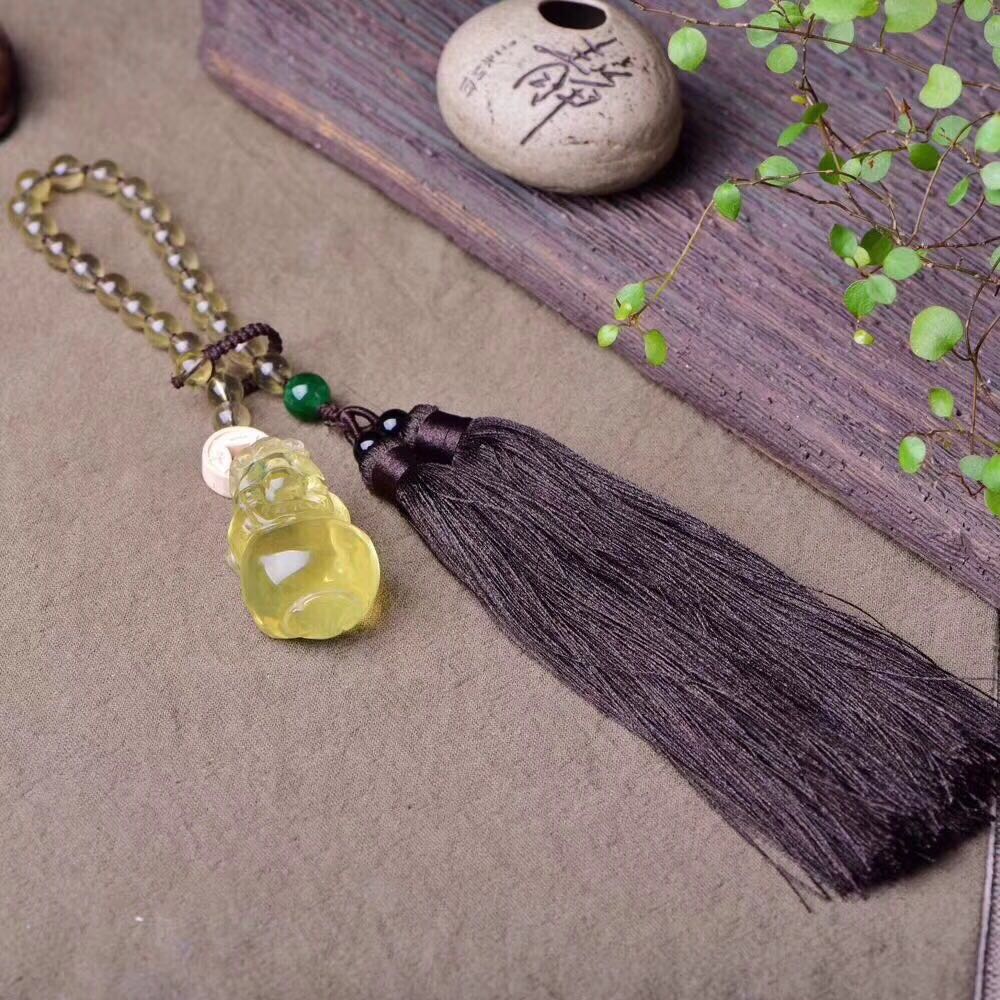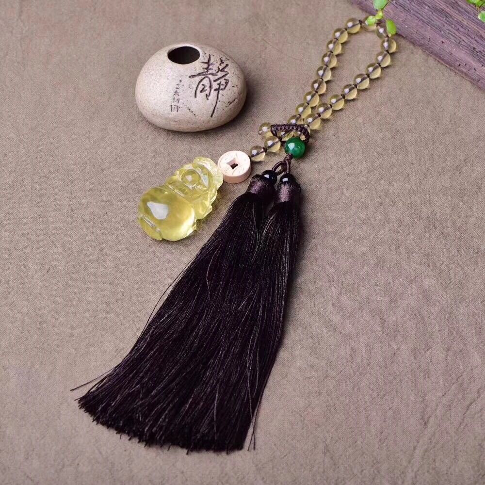 正品天然黃水晶貔貅吊墜車掛 黃水晶珠鏈車飾品掛墜招財辟邪轉運1入