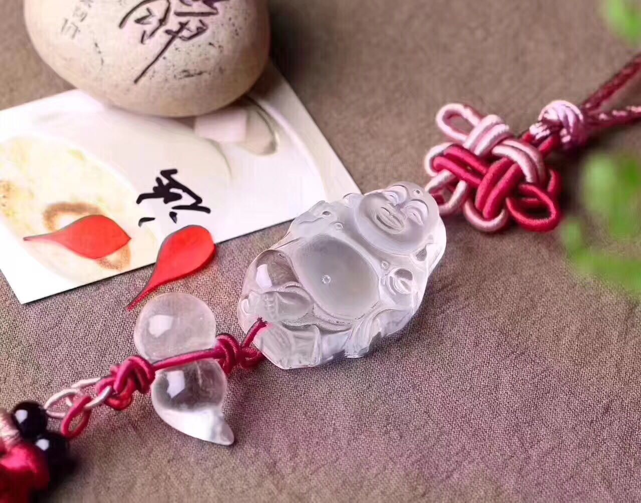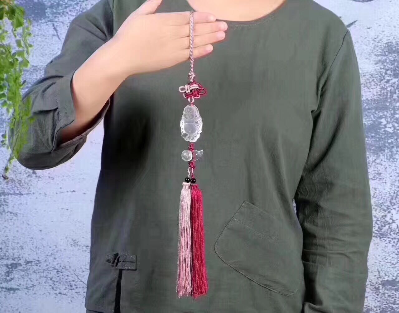 正品天然白水晶大肚佛車掛吊墜手工編織流蘇葫蘆福祿平安車飾吊墜1入