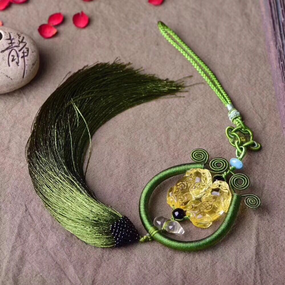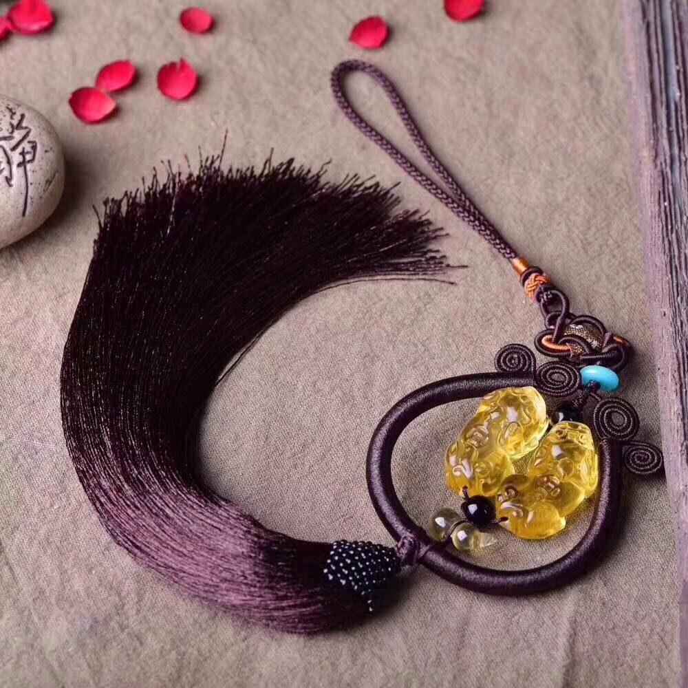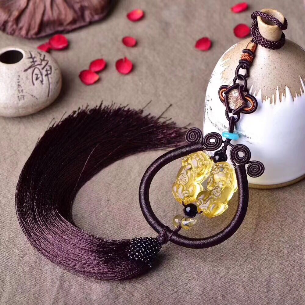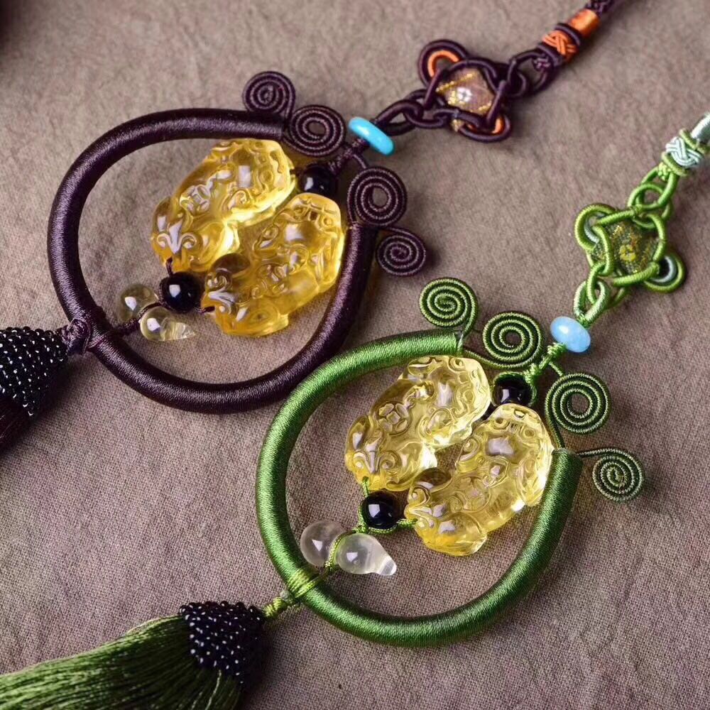 正品 手工藝品黃水晶貔貅葫蘆車掛吊墜 貔貅招財辟邪保平安吊墜1入