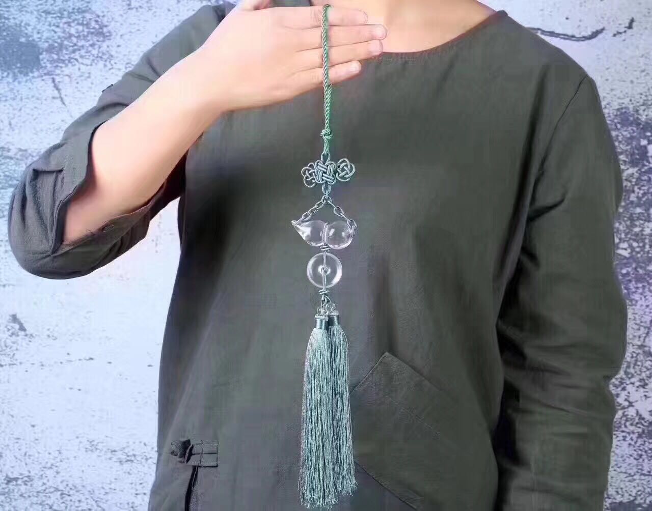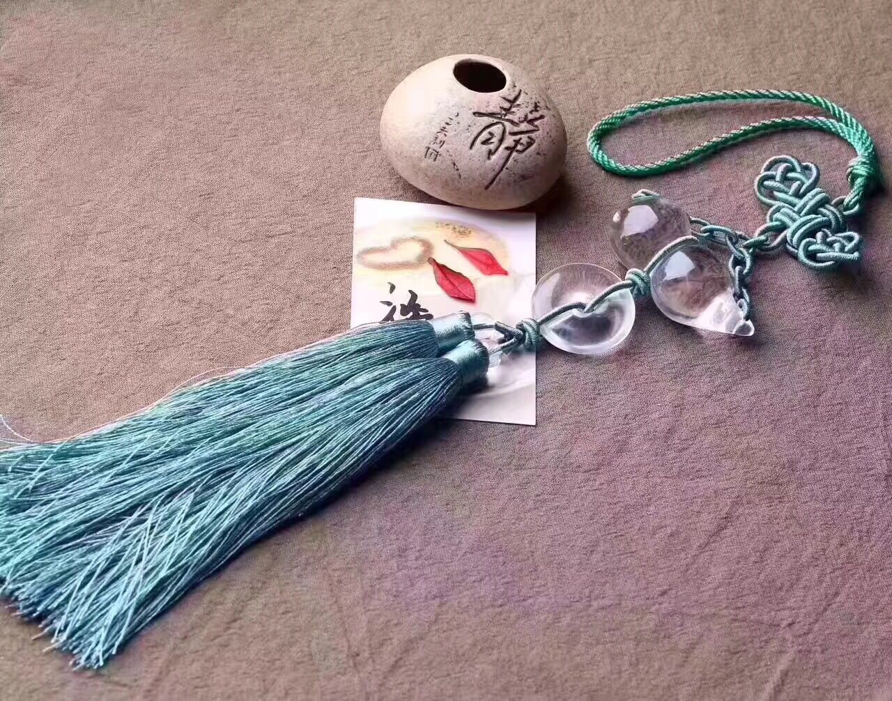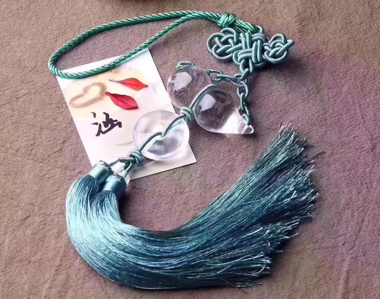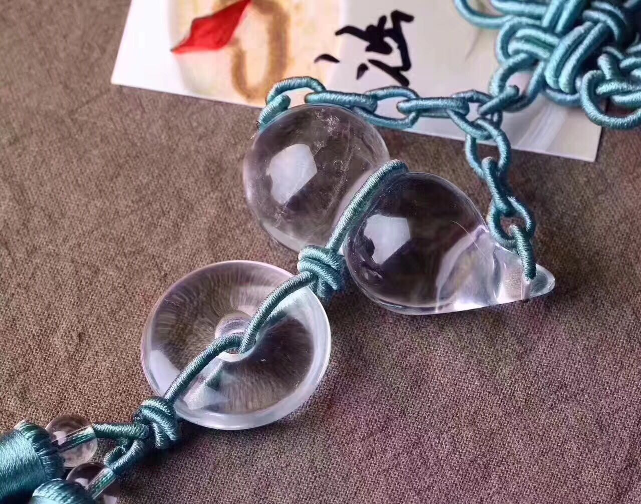 天然白水晶葫蘆車掛、平安扣搭配、葫蘆(福祿)平安!手工編織流蘇!顏色可以定制!