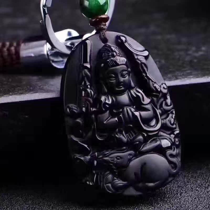 正品天然黑曜石生肖鼠守護神 千手觀音菩薩吊墜 汽車鑰匙扣吊墜1入