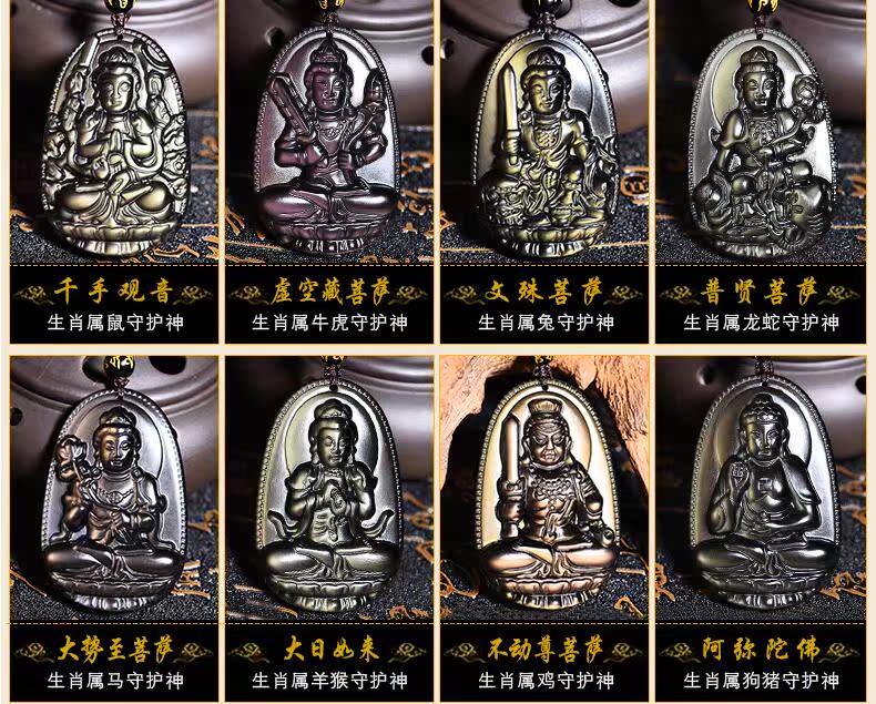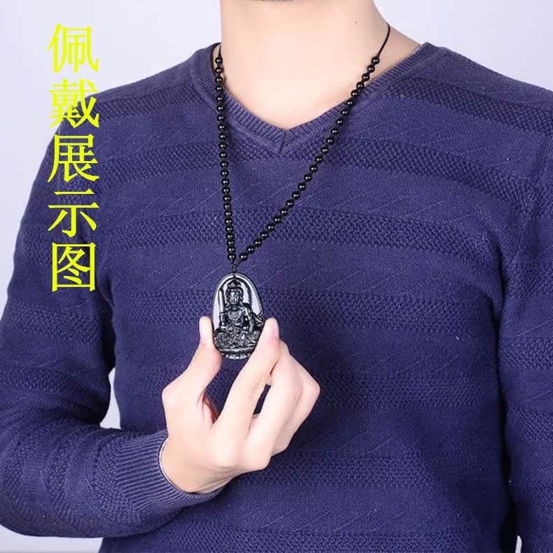 開光天然彩眼黑耀石大日如來屬羊屬猴本命佛吊墜生肖男女飾品項鏈1入