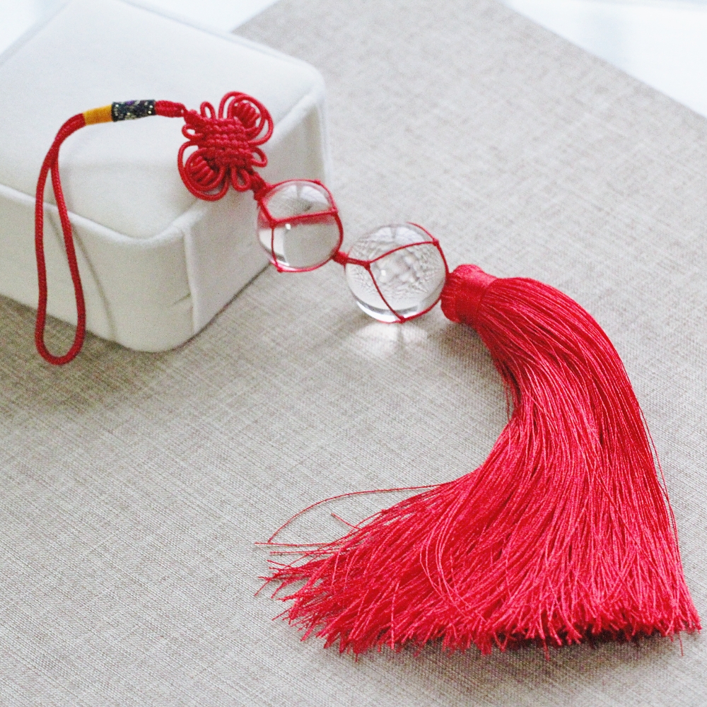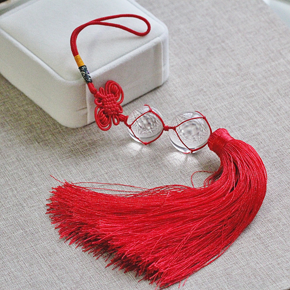 正品天然白水晶球吊墜 水晶球車掛門掛包掛 手工編織中國結水晶球1入