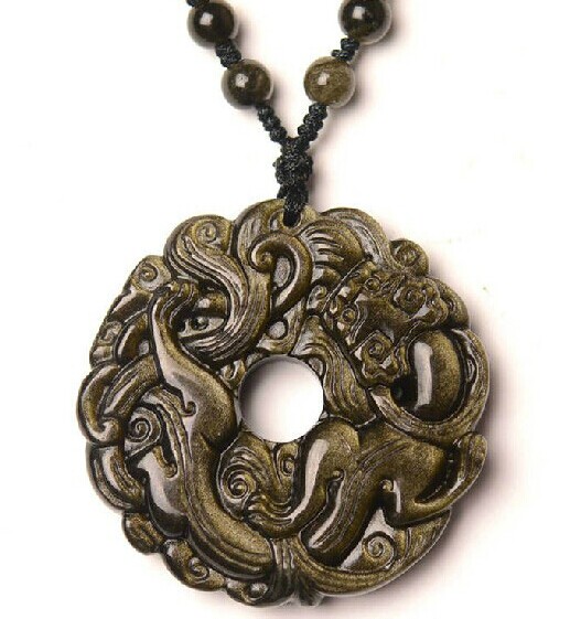 開光黑曜石貔貅吊墜 金曜石貔貅平安扣招財男士項鏈護身符吊墜1入