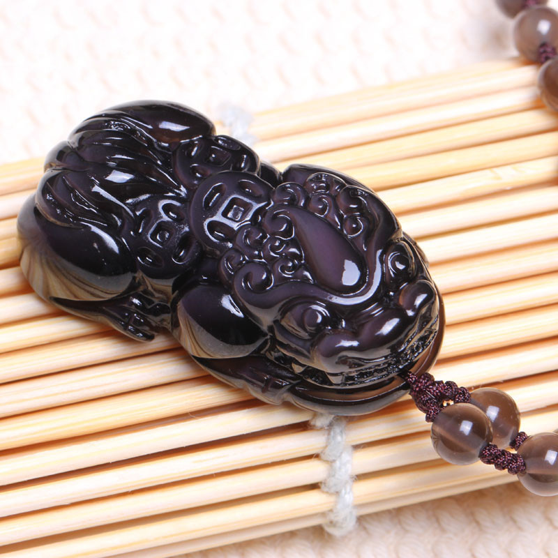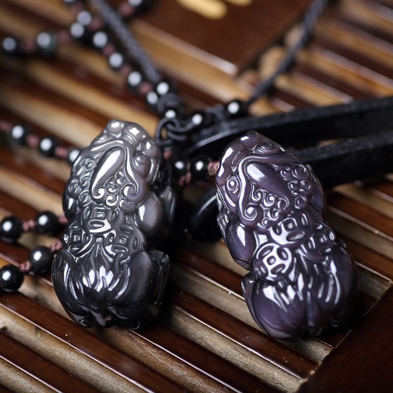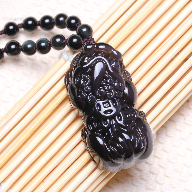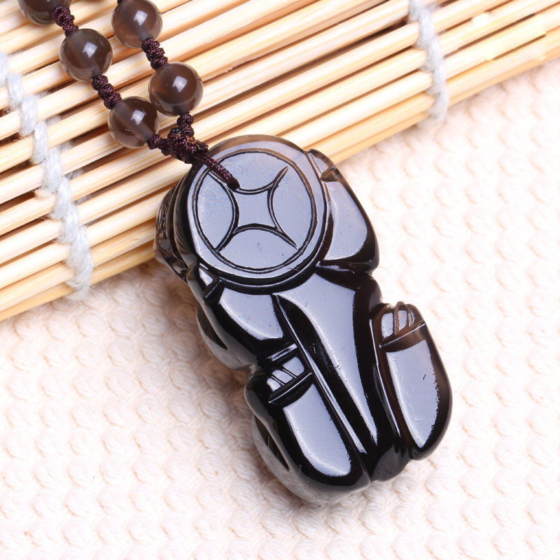 開光正品天然冰種黑曜石貔貅吊墜 男女款 招財轉運助事業1入