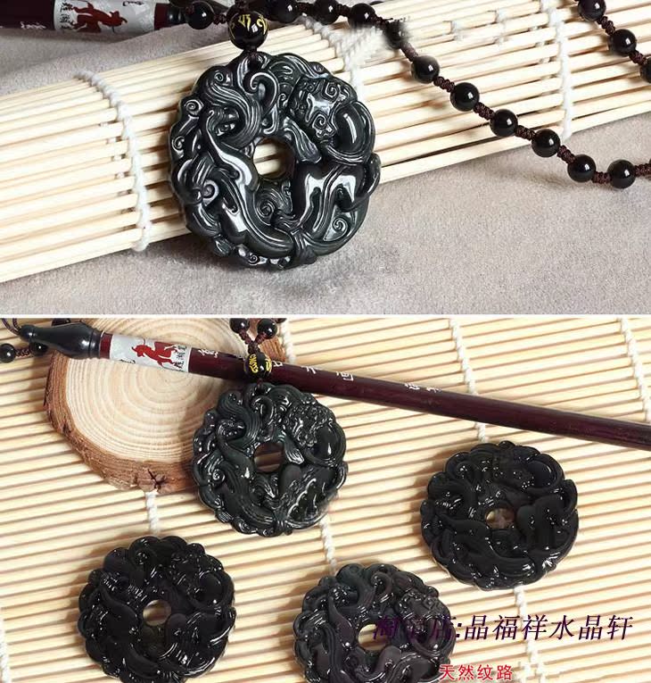 開光黑曜石貔貅吊墜 男士平安扣項鏈 辟邪招財轉運貔貅吊墜1入