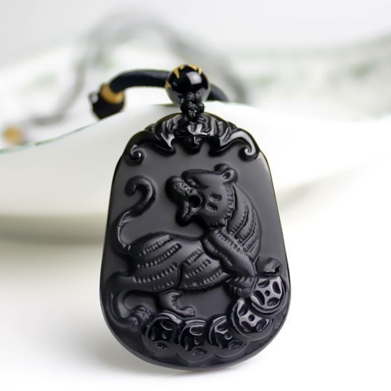 開光天然磨砂黑曜石虎吊墜 十二生肖老虎吊墜 水晶虎吊墜女吊墜1入