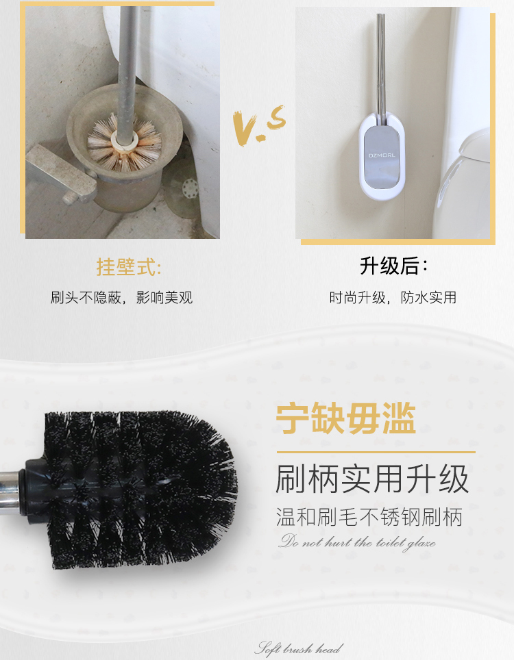 馬桶刷套裝廁所刷免打孔衛生間潔廁刷子軟毛無死角馬桶刷架吸壁式1入