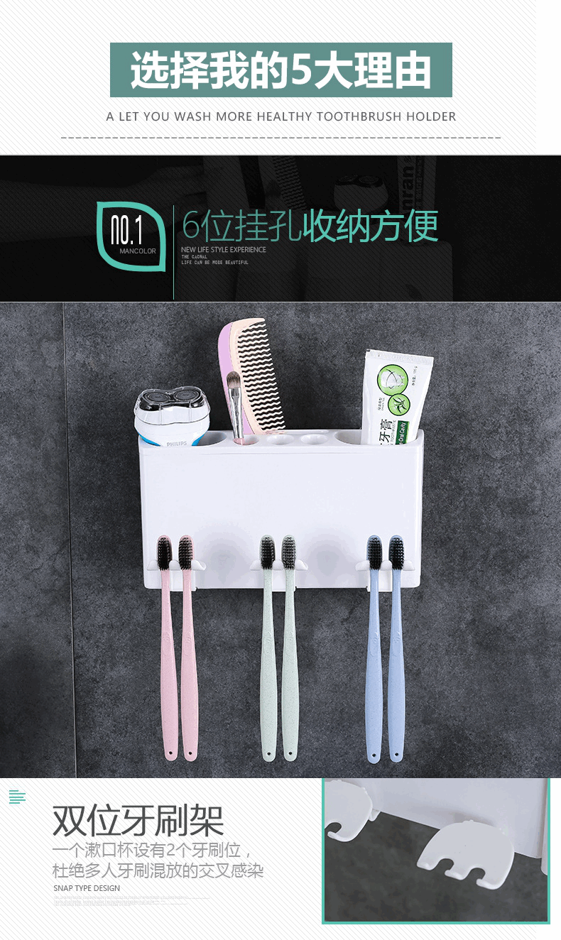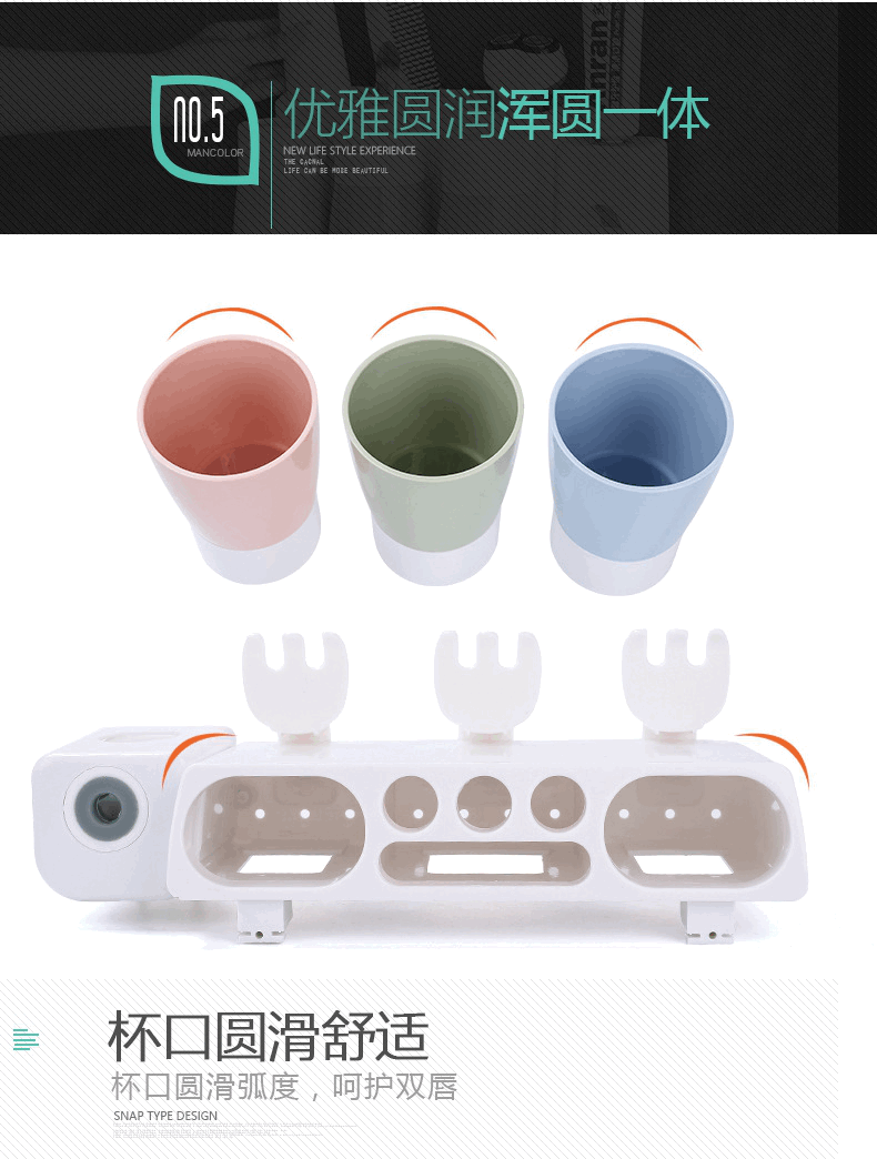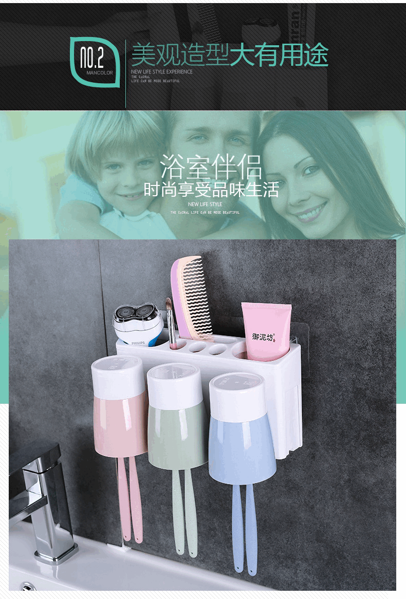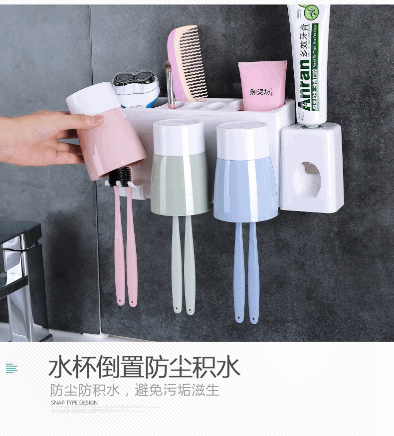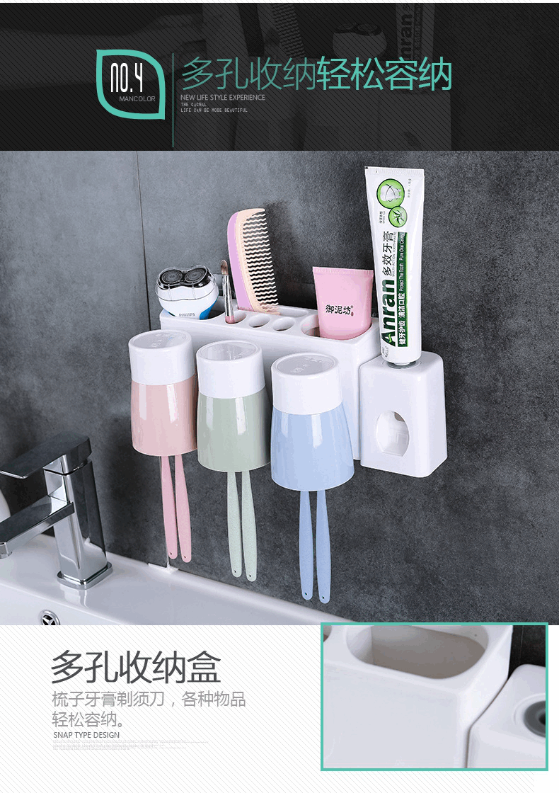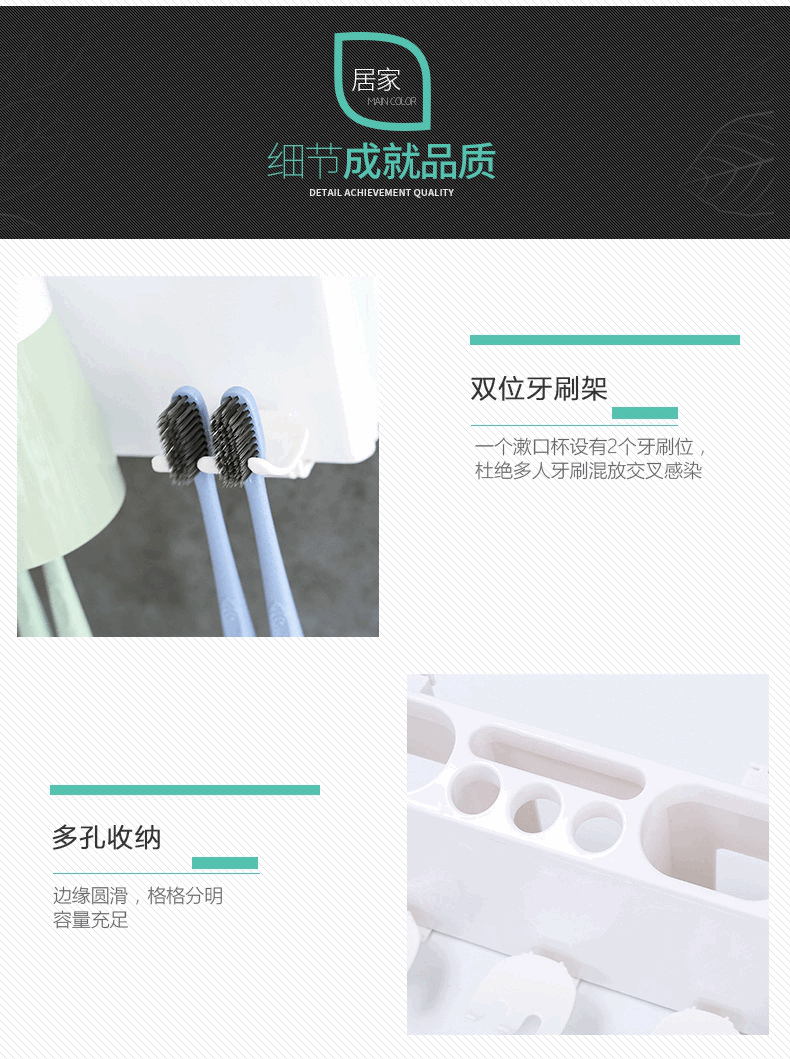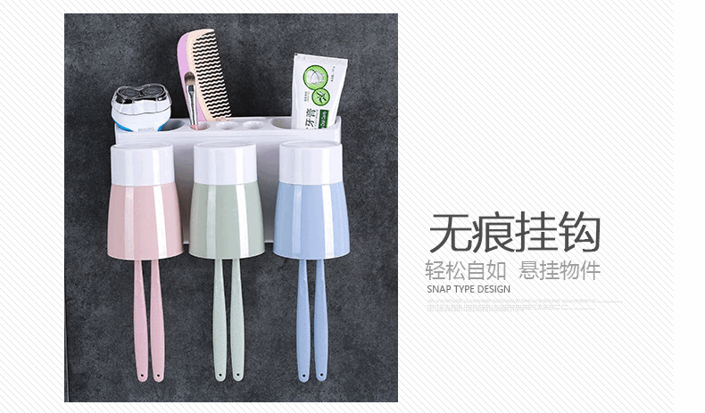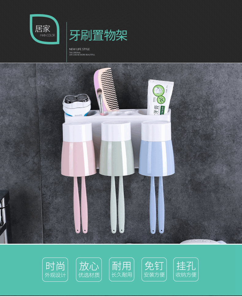衛生間牙刷架免打孔吸壁式三口四口之家壁掛漱口杯套裝牙杯置物架1入