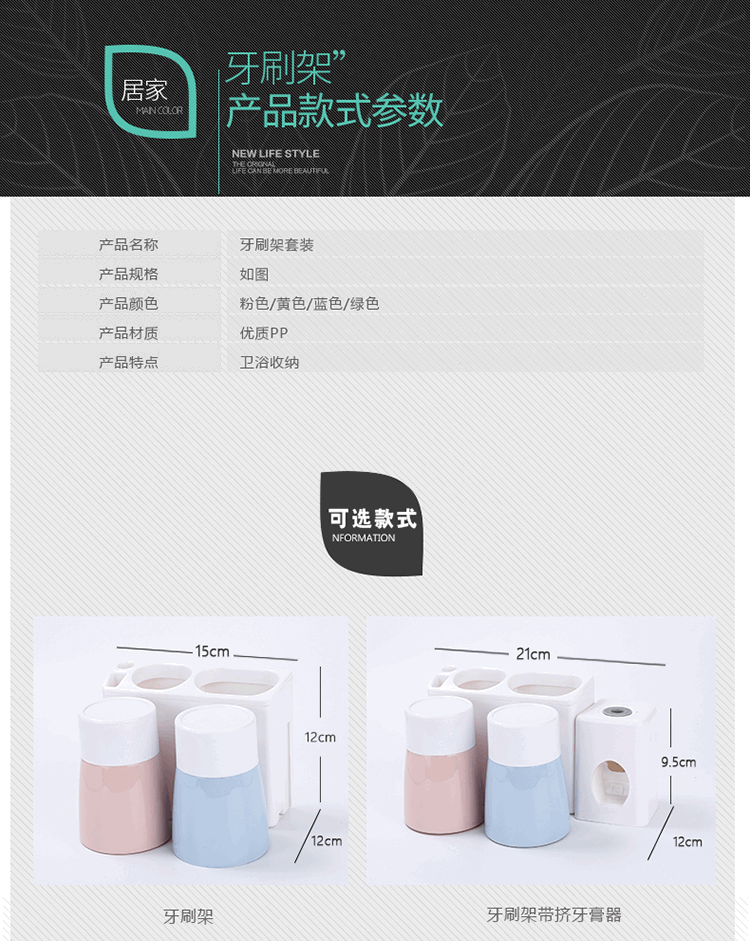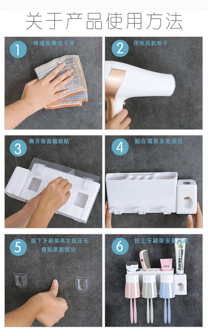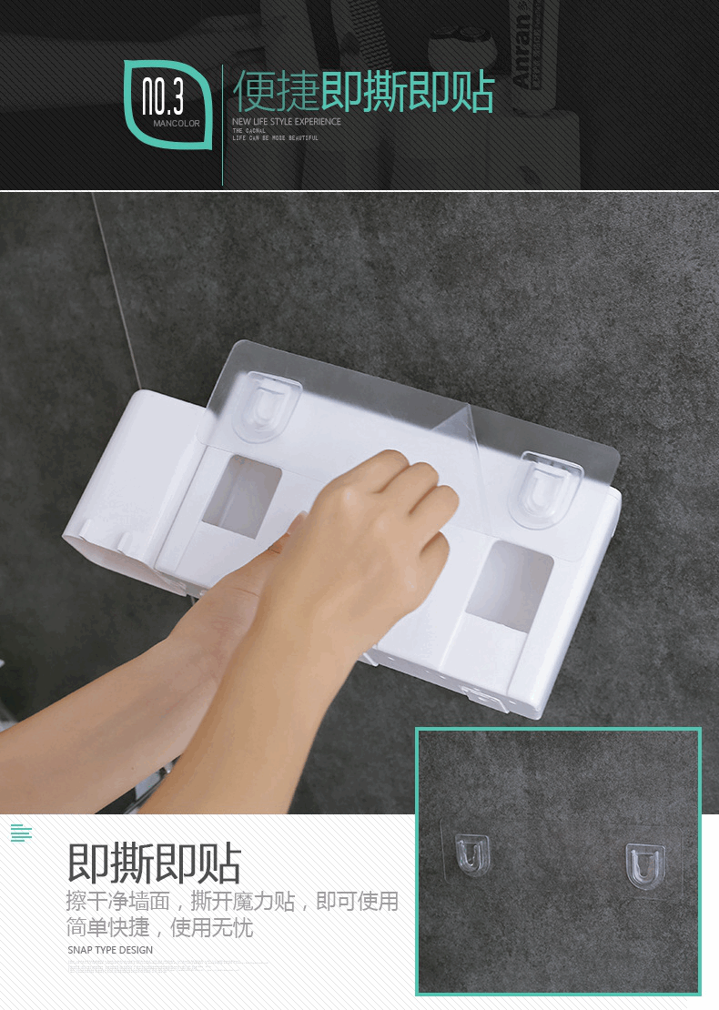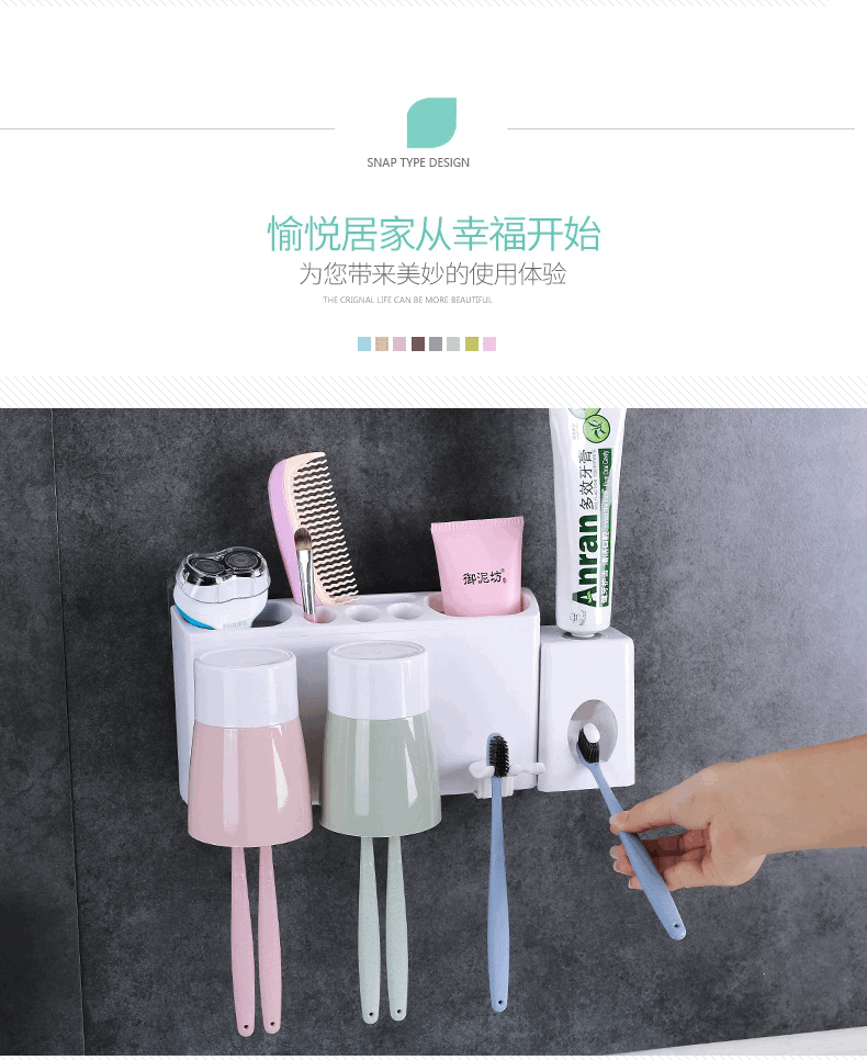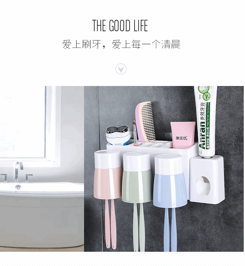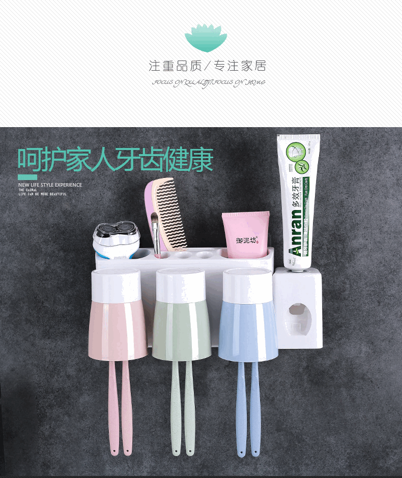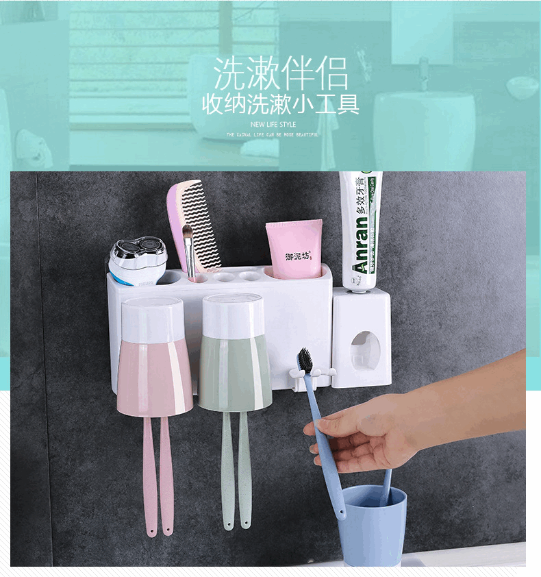 衛生間牙刷架免打孔吸壁式三口四口之家壁掛漱口杯套裝牙杯置物架1入