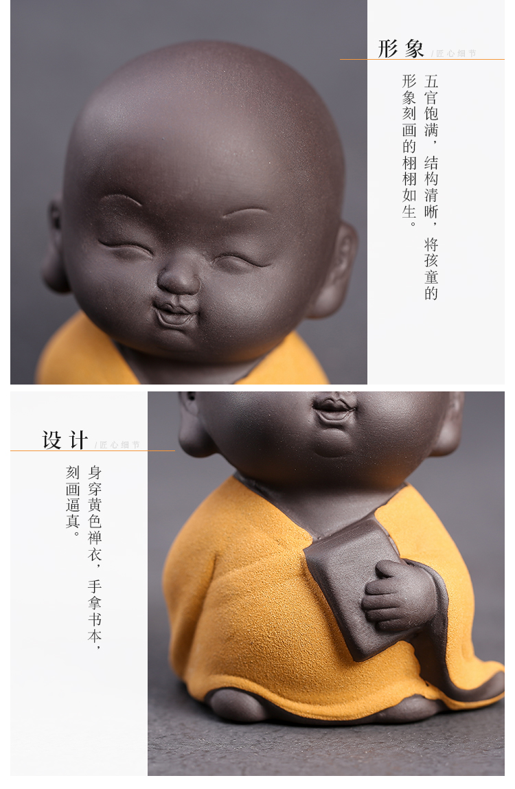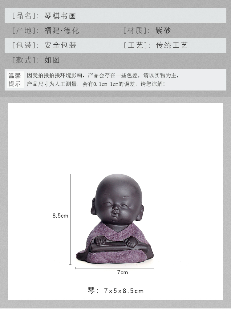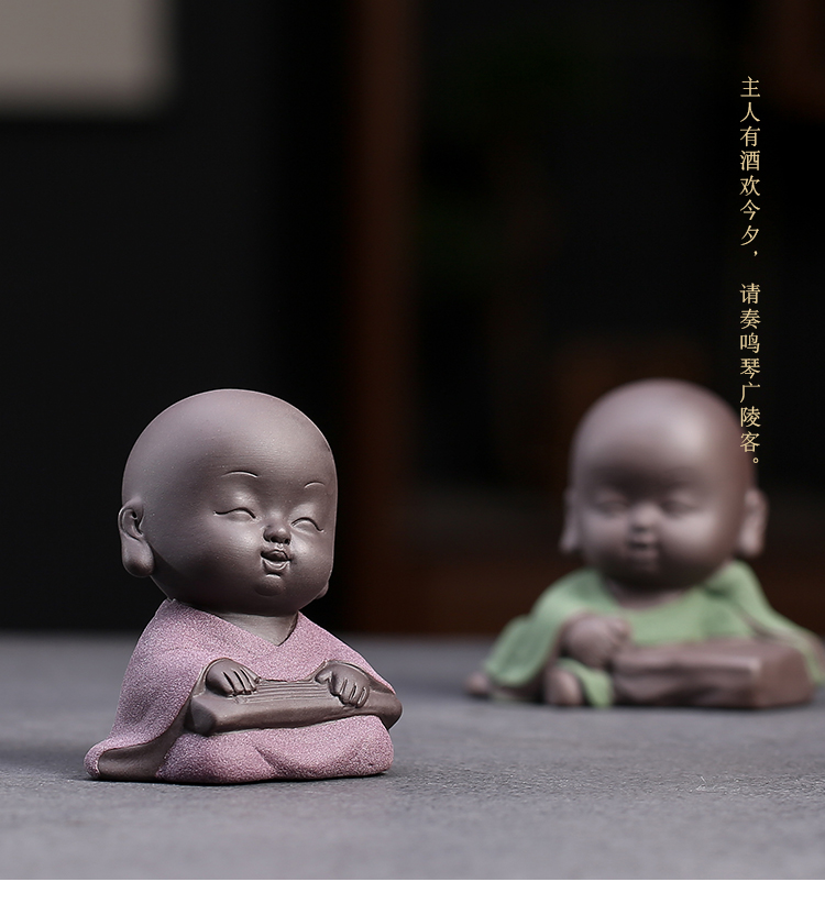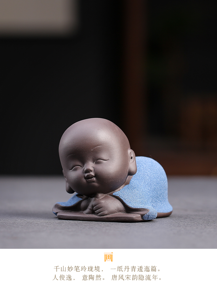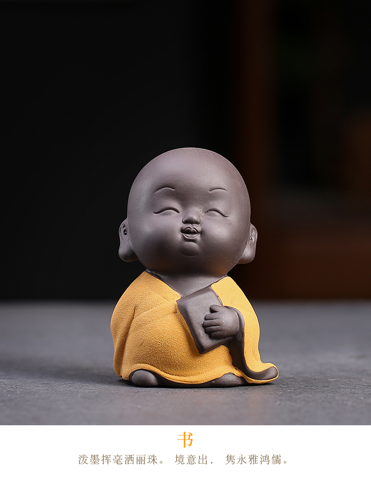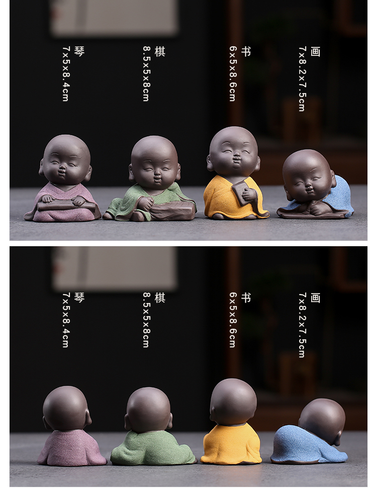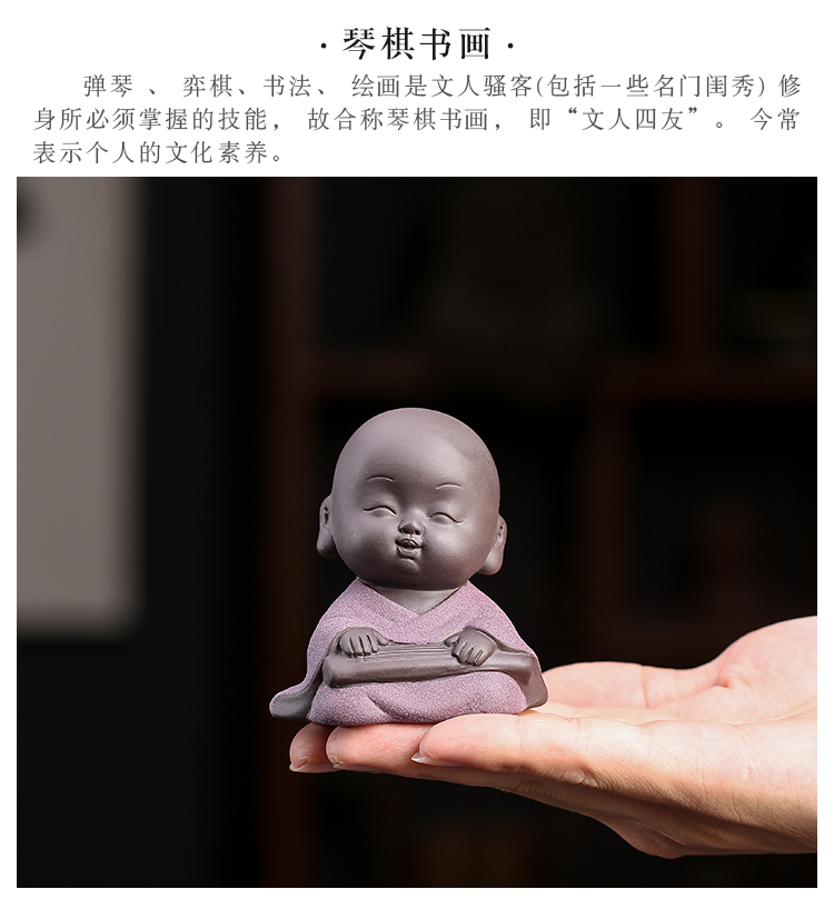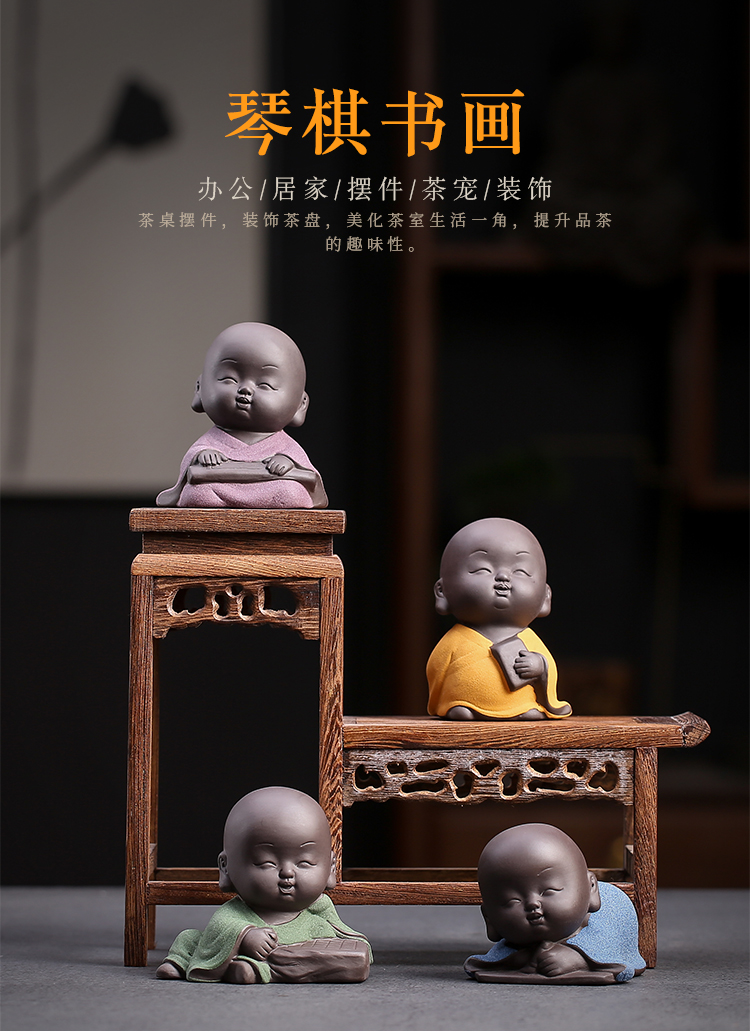 創意個性琴棋書畫小和尚茶寵擺件功夫茶具茶道茶盤家居書房裝飾品1入