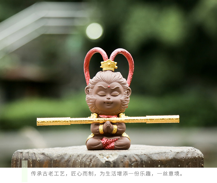 紫砂可愛茶具茶寵猴子齊天大圣孫悟空家居車載車上裝飾品擺件1入